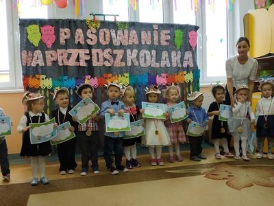 W dniu 14 listopada 2018 r. w Przedszkolu Samorządowym w Kowalach Oleckich odbyła się uroczystość „Pasowanie na Przedszkolaka”. Był to niezwykły moment, w którym dzieci najmłodsze w końcu stały się prawdziwymi przedszkolakami. Uroczystość rozpoczęła się od powitania gości i przedstawienia części artystycznej, w której dzieci zaprezentowały swoje umiejętności – dając tym samym dowód, jak wiele już potrafią. Maluszki stanęły w obliczu wielkiego wyzwania, ponieważ na sali zasiadali rodzice oraz dziadkowie i dzieci najchętniej znalazłyby się w ich objęciach. Po części artystycznej nastąpiło pasowanie. Pani dyrektor wielkim ołówkiem pasowała każde dziecko, wypowiadając formułkę „pasuję cię na przedszkolaka”. Na pamiątkę tego ważnego wydarzenia każdy przedszkolak otrzymał dyplom pasowania oraz medal. Uroczystość ta pozwoliła rodzicom, nauczycielkom i dzieciom na wspólną integrację. Był to szczególny oraz pełen wrażeń dzień nie tylko dla dzieci, ale także rodziców i dziadków, nie jednemu z nich łezka zakręciła się w oku. Po uroczystości wszyscy zebrani zostali zaproszeni do pamiątkowego zdjęcia oraz na poczęstunek.
