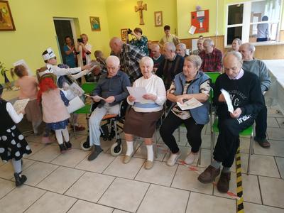 We wtorek 20 listopada nasze przedszkolaki wybrały się do pobliskiego Zacisza, aby razem z jego mieszkańcami uczcić niezwykłą datę- Dzień Seniora. Dzieci przygotowały z tej okazji część artystyczną, która wywołała u zebranych niezwykłe emocje, a momentami nawet rozbawiła. Nie zabrakło wierszy, tańców, piosenek oraz oczywiście pięknych laurek, oraz słodkich niespodzianek dla naszych podopiecznych. Spotkanie to było znakomitą okazją do zaszczepiania już od najmłodszych lat szacunku dla osób starszych i na pewno pozostanie w pamięci naszych kochanych Seniorów, którzy bardzo gorąco dziękowali za zaproszenie i mile spędzony czas.Mariola Więcko