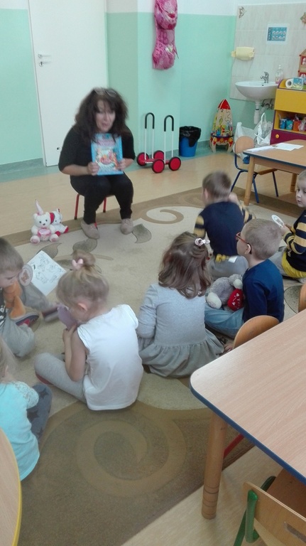 Do krainy misiowych przygód, z okazji Dnia Pluszowego Misia, wprowadziła dzieci pani Beatka, która czytała dzieciom książki, m.in. ,,Urodziny Puchatka”. Zainteresowała je ciekawymi zabawami i misiowym kodowaniem.