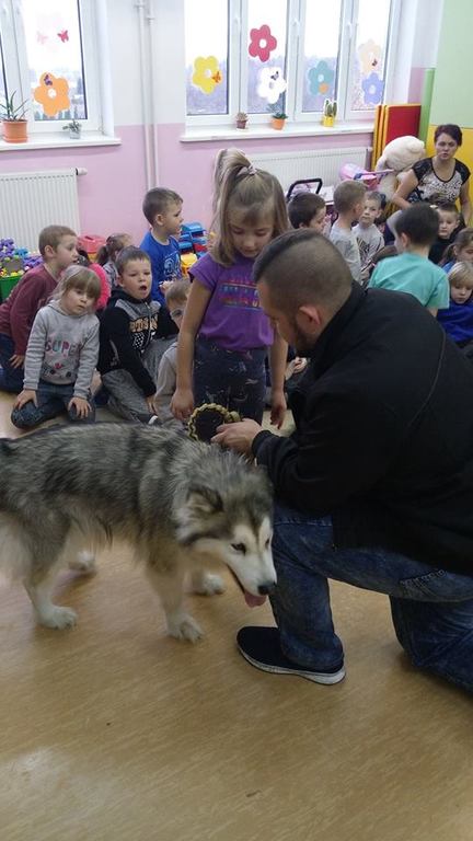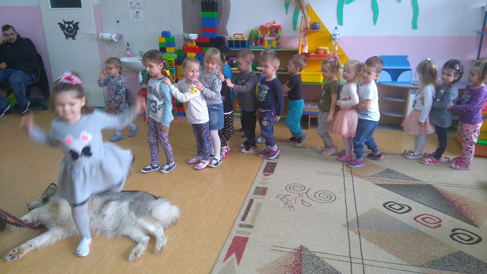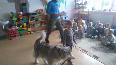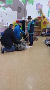 Cykl zajeć z psami ma na celu zapoznać dzieci z odpowiednim zachowaniem podczas kontaktów z futrzakami.