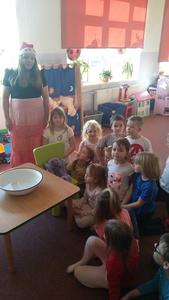 Przedszkolaki posmakowały nie tylko przygody z wróżbami, ale też słodkich pyszności przygotowanych przez rodziców.