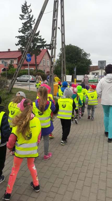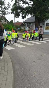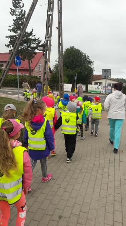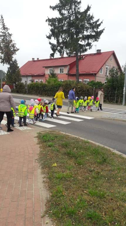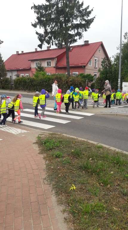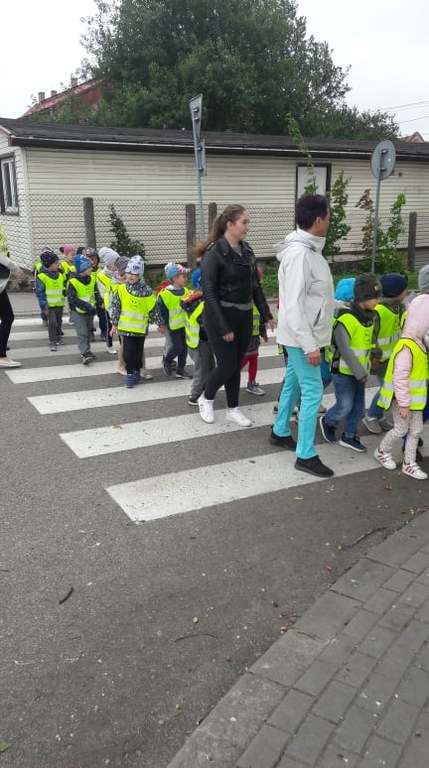 16 września przedszkolaki wybrały się na wycieczkę na pobliskie skrzyżowanie. Celem wycieczki było przypomnienie sobie zasad ruchu drogowego, jak również zaobserwowanie zachowania się pieszych i kierowców. Dzieci z uwagą obserwowały ruch uliczny, nazywały pojazdy oraz poznane znaki drogowe.