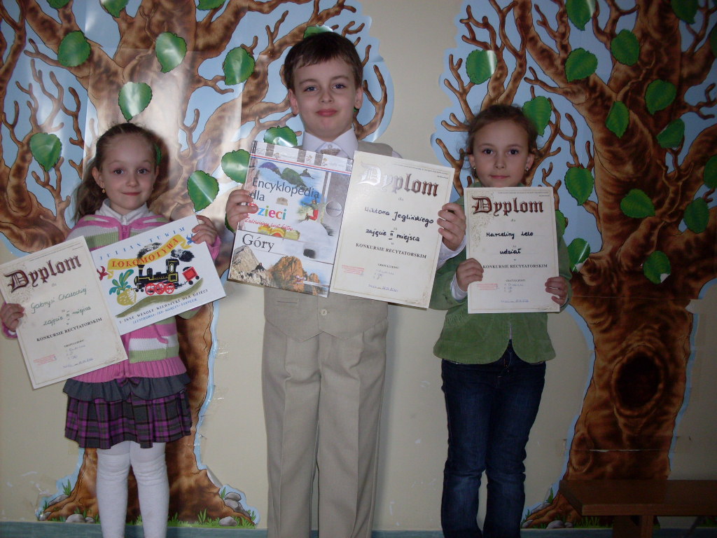 Troje dzieci:Chalecka Gabrysia( III miejsce), Lelo Marcelina, Jegliński Wiktor (II miejsce) uczestniczyło w konkursie recytatorskim pt.,,Przyroda w twórczości Marii Konopnickiej” w Sokółkach.
