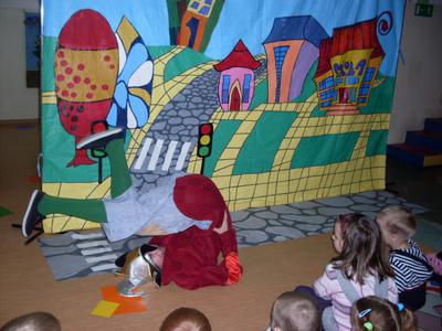 O godzinie 9:30 dzieci zachwycały się występem aktorów z Białegostoku. Udowodniły artystom, że posiadają dużą wiedzę o ruchu drogowym.