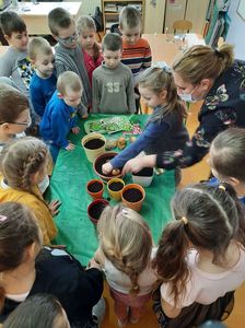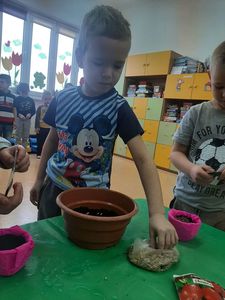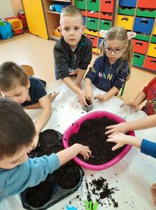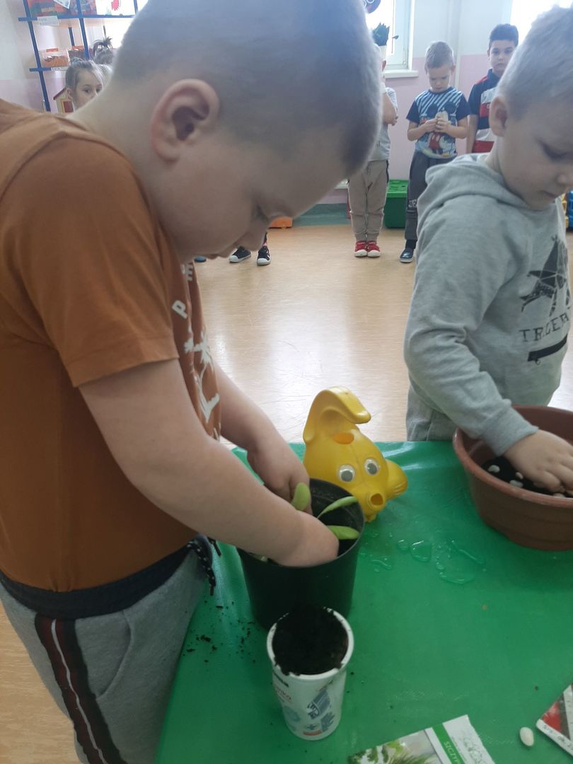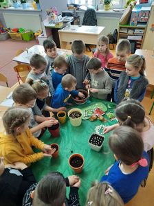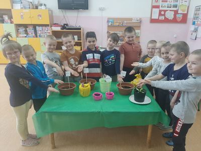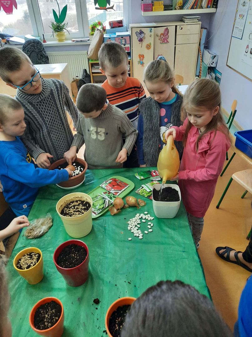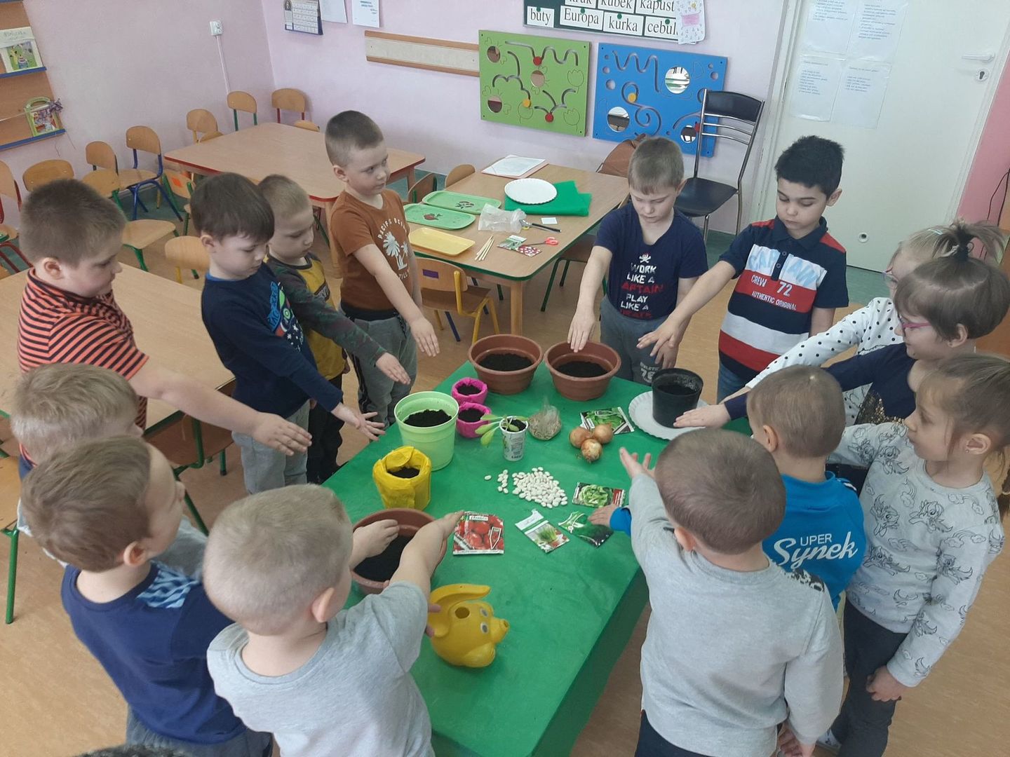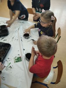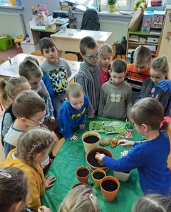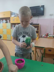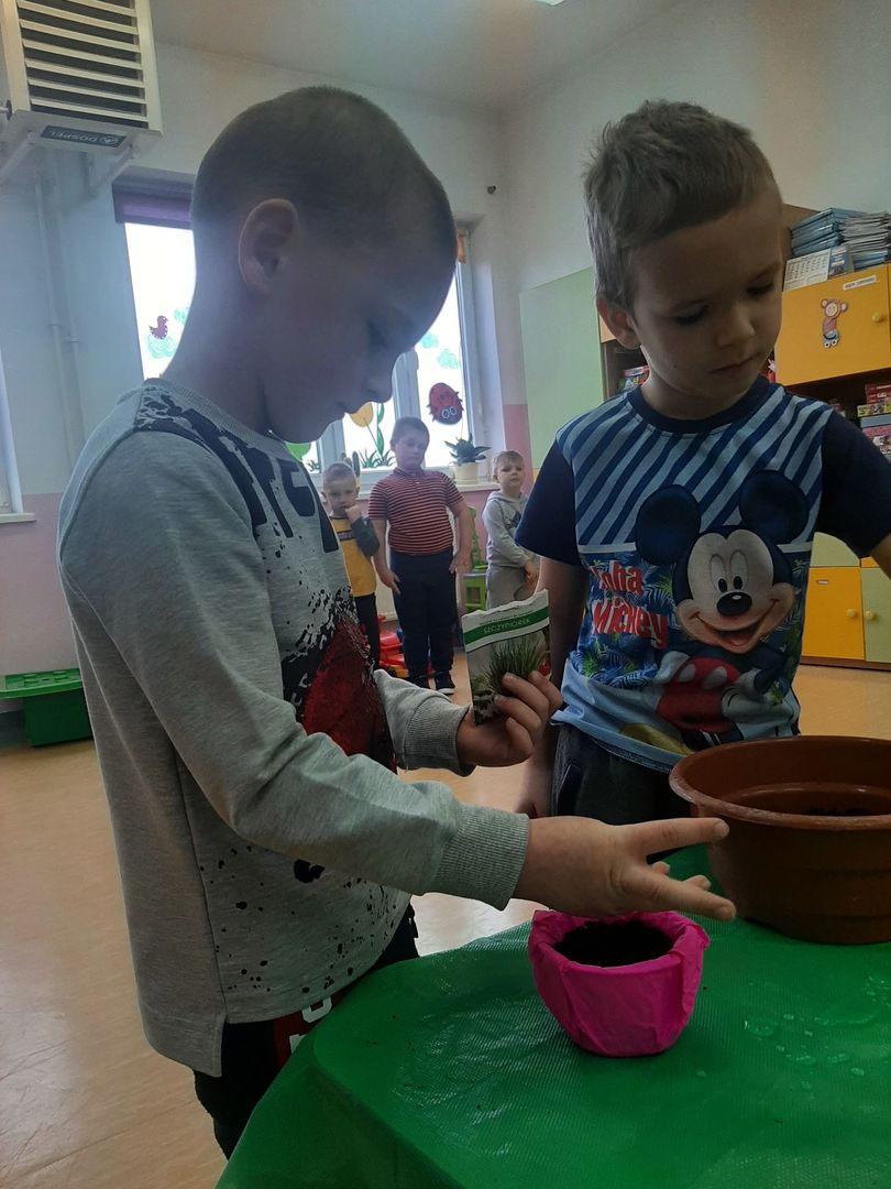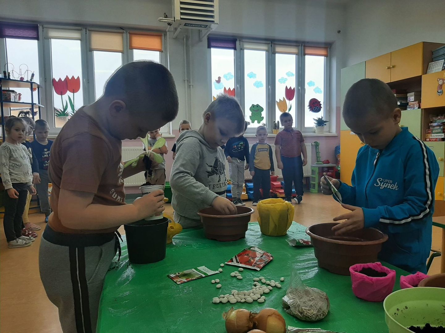 Siejemy, sadzimy i obserwujemy :) Bawimy się w ogrodników, dowiadujemy się, jak należy przygotować podłoże, jak sadzić cebulki, a jak siać nasiona, a także jak podlewać i dbać o nasze warzywa: szczypiorek, sałatę, rzodkiewkę.