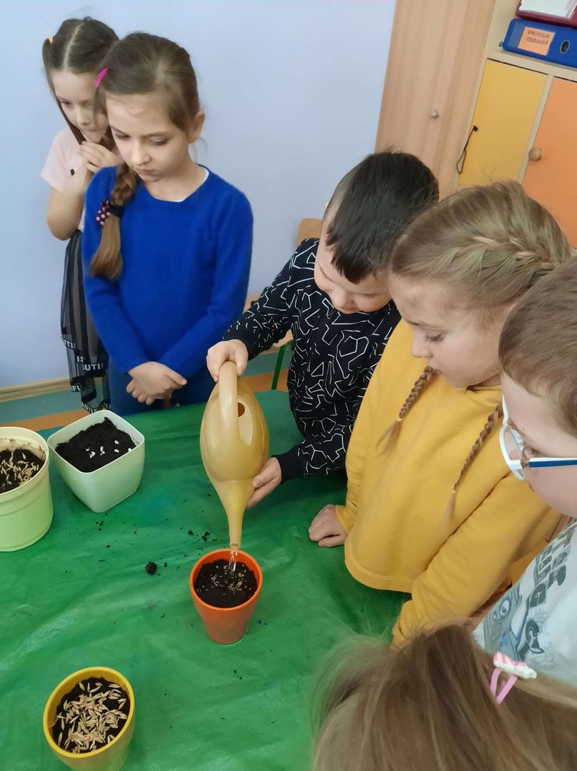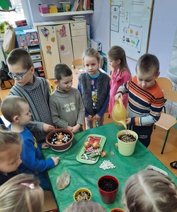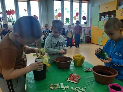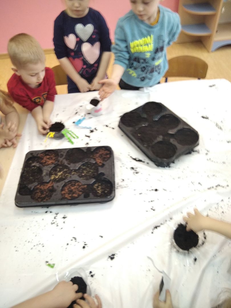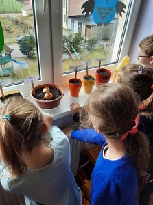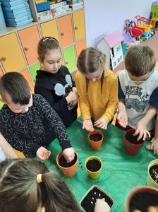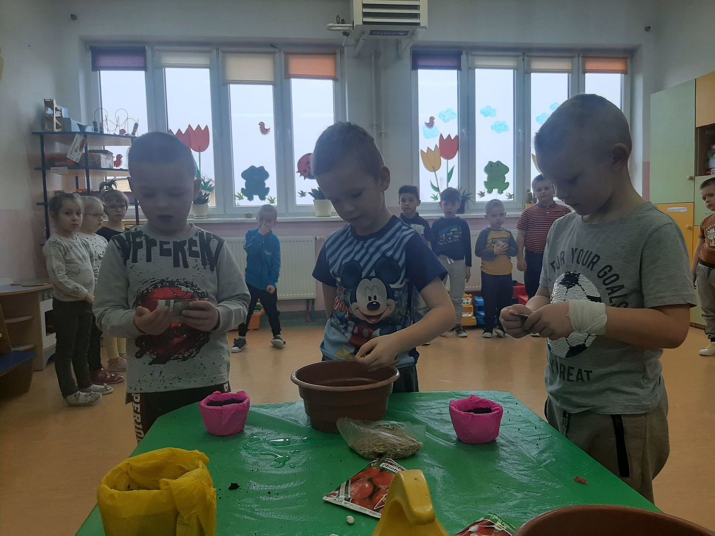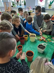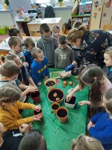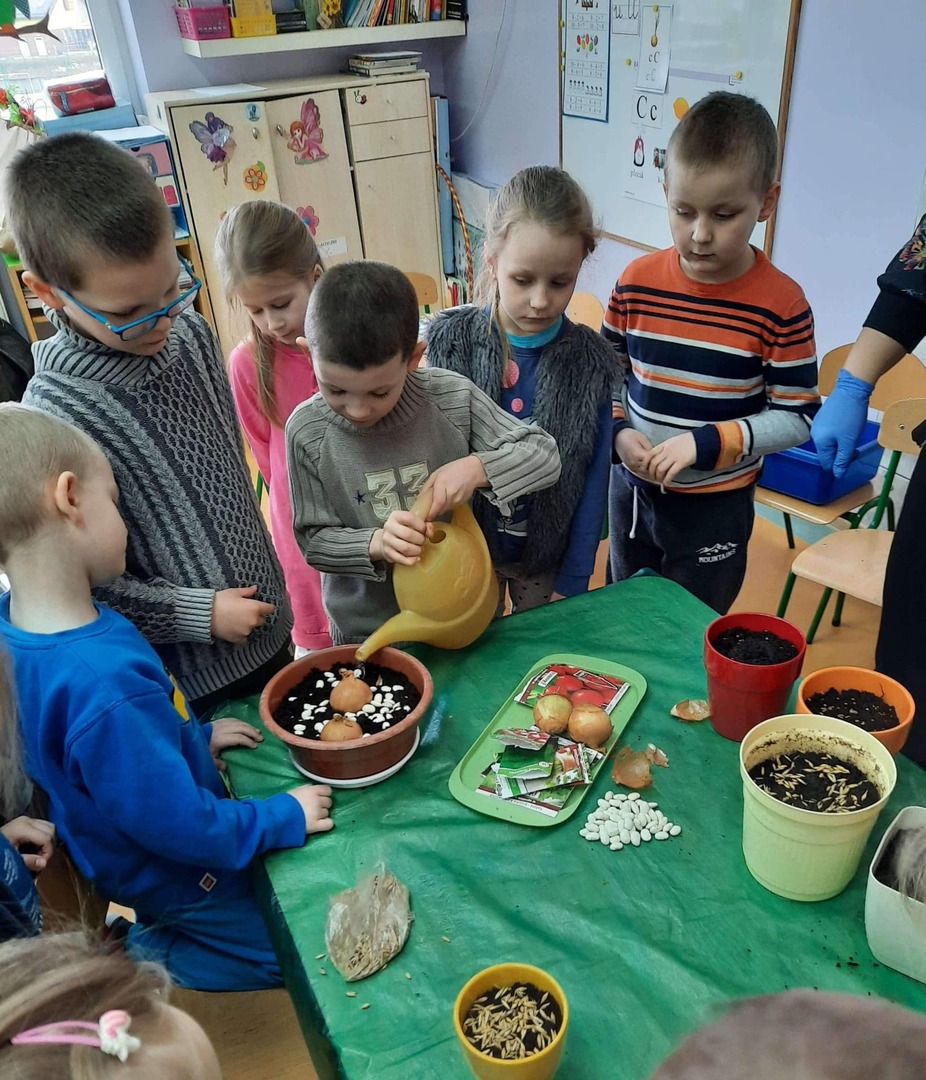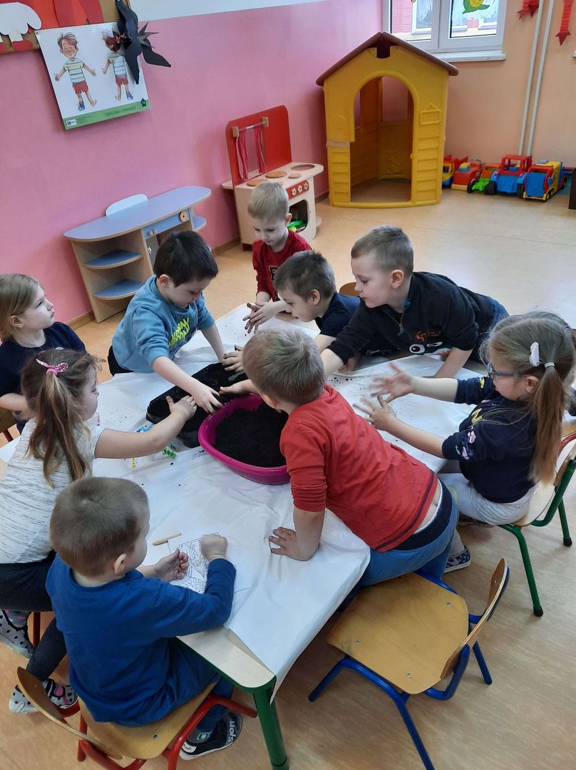Siejemy, sadzimy i obserwujemy :) Bawimy się w ogrodników, dowiadujemy się, jak należy przygotować podłoże, jak sadzić cebulki, a jak siać nasiona, a także jak podlewać i dbać o nasze warzywa: szczypiorek, sałatę, rzodkiewkę.