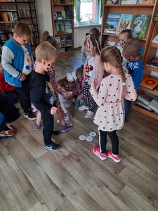 Sześciolatki odwiedziły bibliotekę, a pięciolatki ze względu na panującą aurę odwiedziła pani Beatka. Przeprowadziła z dziećmi zajęcia i zabawy o emocjach. Rozmawiała z dziećmi na temat uczuć i emocji, które mamy w sobie w zależności od sytuacji. Dziękujemy bardzo Pani Beacie za interesujące i pouczające zajęcia.