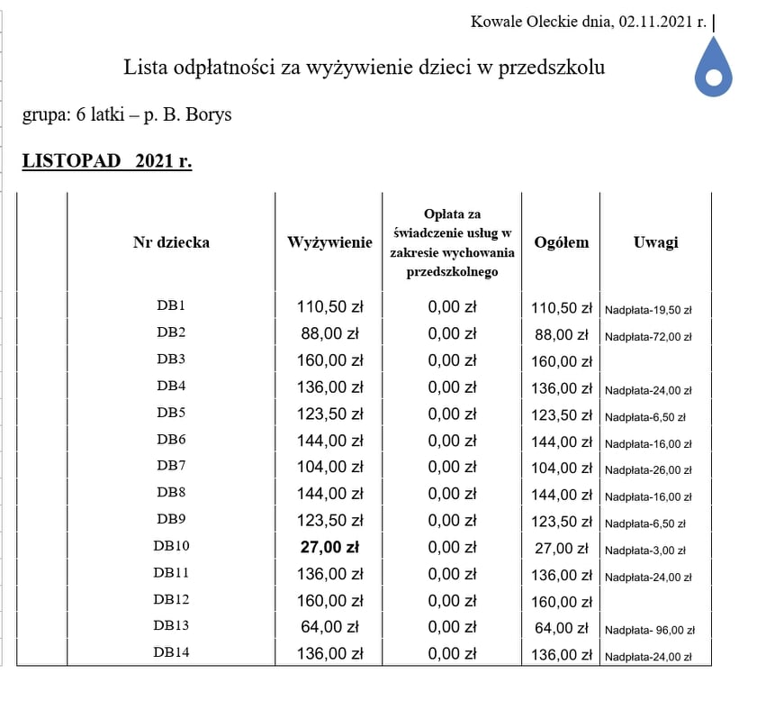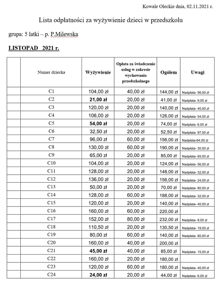 Prosimy wpłacać kwoty wytłuszczone grubym drukiem.