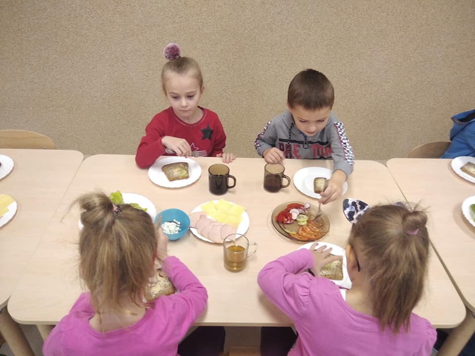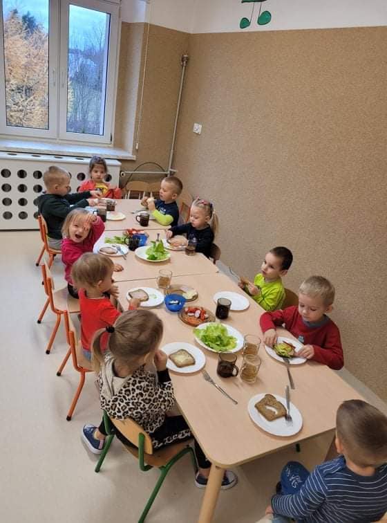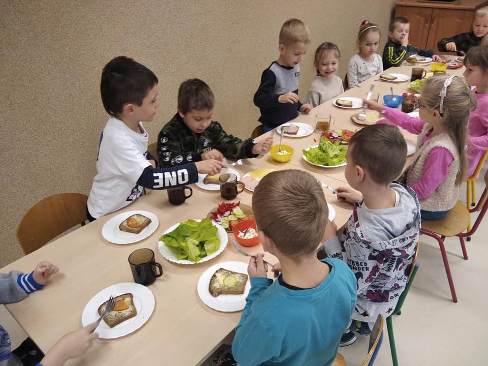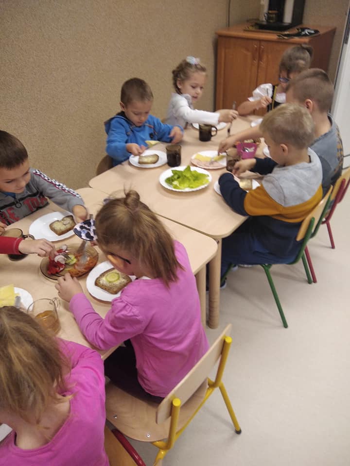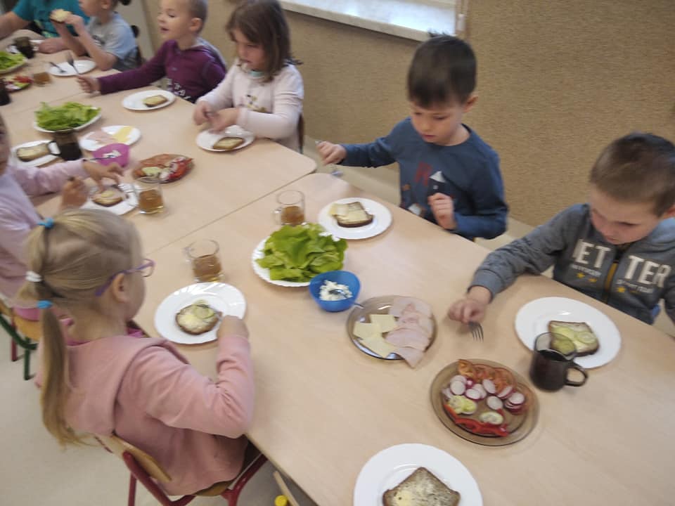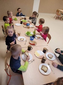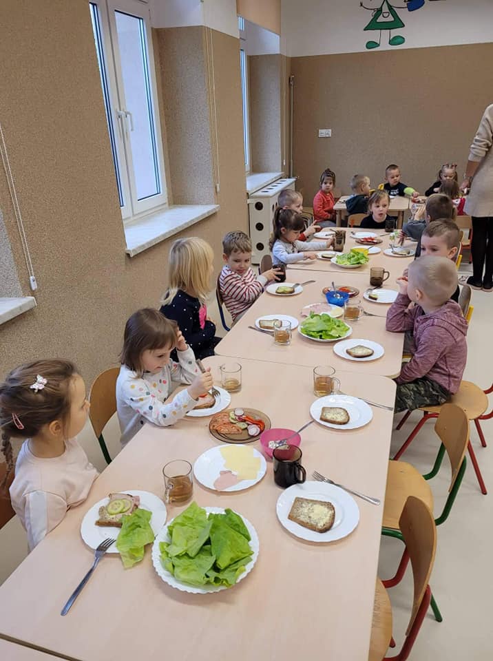 Dzisiaj w naszym przedszkolu obchodziliśmy ,,Dzień Zdrowego Śniadania". W tym dniu dzieci samodzielnie komponowały zdrowe kanapki. Przedszkolaki zapoznały się również z piramidą żywieniową. Akcja ma na celu promocję zasad racjonalnego zdrowego żywienia.