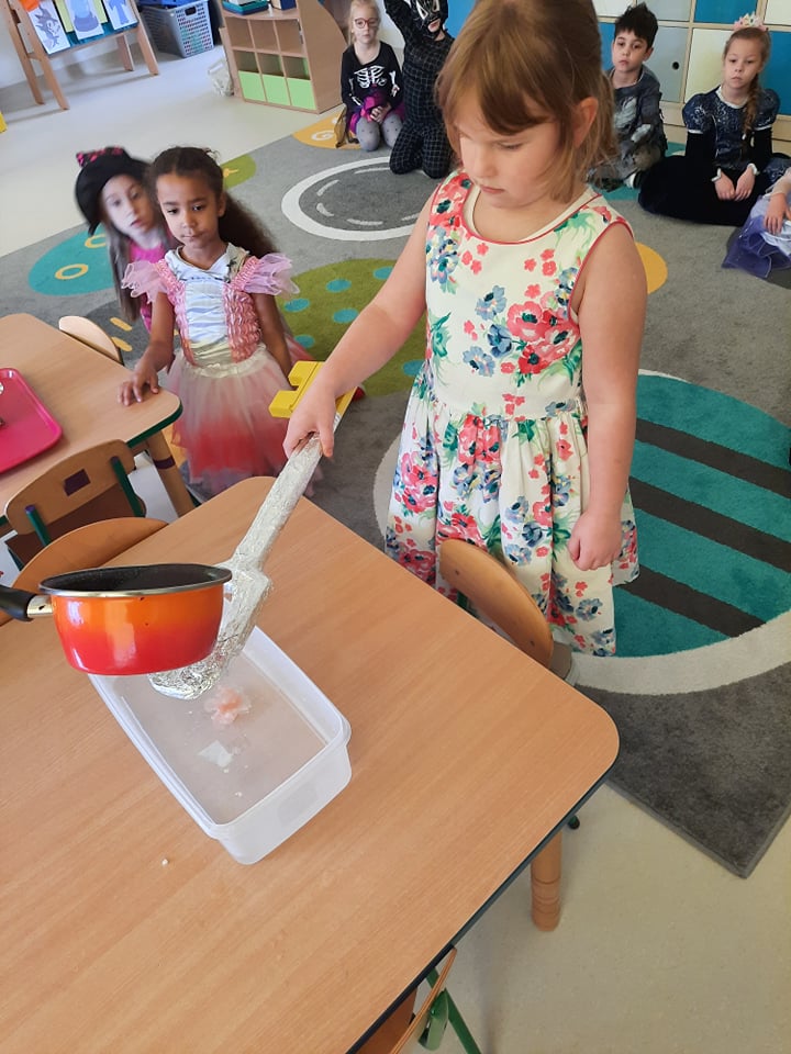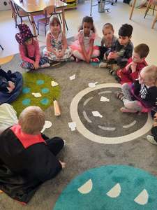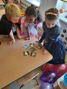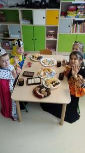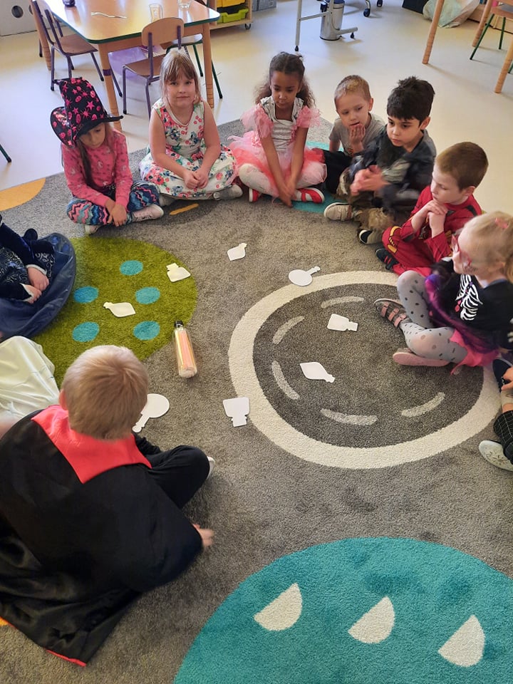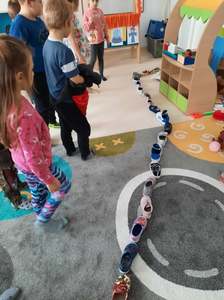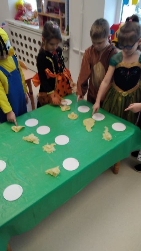 Oczywiście dzisiaj nie zabrakło również tradycyjnego ustawiania „bucików”, „losowania rekwizytów” i innych wróżb związanych z tym świętem. Przedszkolaki z uśmiechem na twarzy chętnie brały udział w magicznym rytuale andrzejkowym.