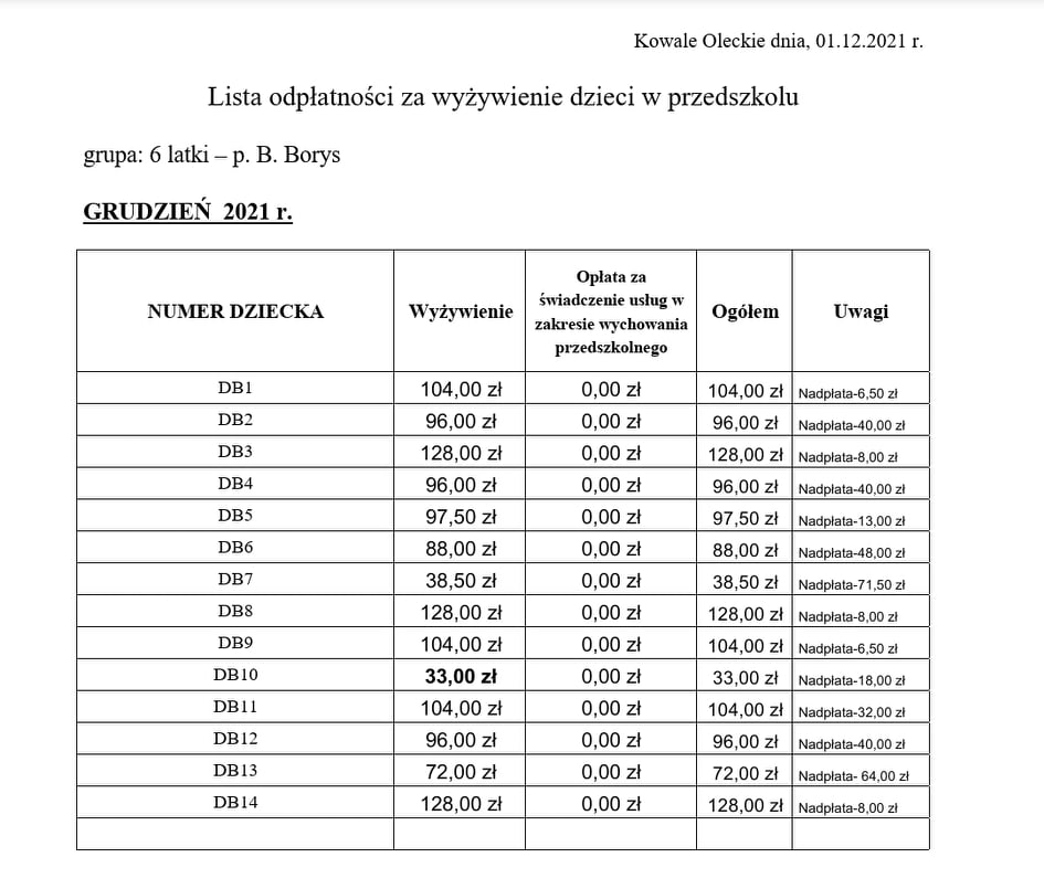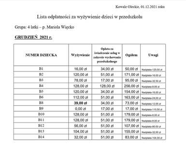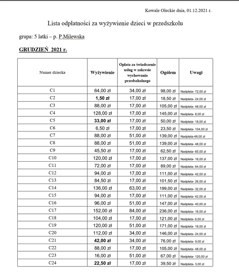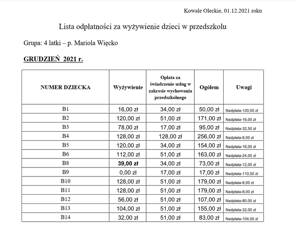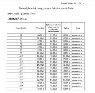 Prosimy by w tym miesiącu dokonać wpłaty do dnia 10.12.2021.