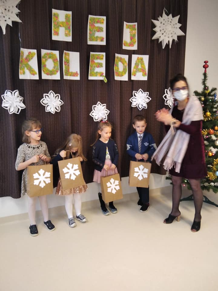 Dzisiaj w naszym przedszkolu odbył się konkurs kolęd i pastorałek, w którym udział wzięło czworo dzieci. Celem konkursu było podtrzymywanie tradycji śpiewania kolęd oraz umożliwienie dzieciom reprezentowania swoich zdolności i umiejętności wokalnych. Wszystkie dzieci z dużym zaangażowaniem przygotowały się do występu. Poziom konkursu był bardzo wysoki i wyrównany, wszyscy uczestnicy zaśpiewali pięknie. Wszystkie dzieci zostały nagrodzone nagrodami rzeczowymi, które wręczyła dzieciom Pani Dyrektor. Za sprawą pięknie zaśpiewanych kolęd i pastorałek, poczuliśmy magię Świąt Bożego Narodzenia.