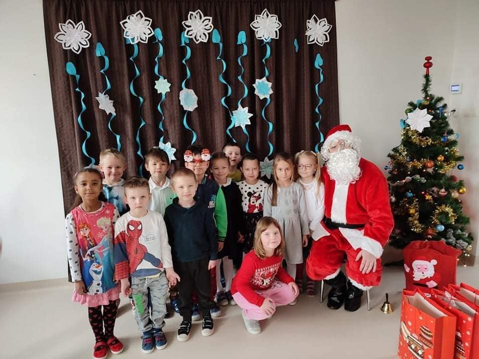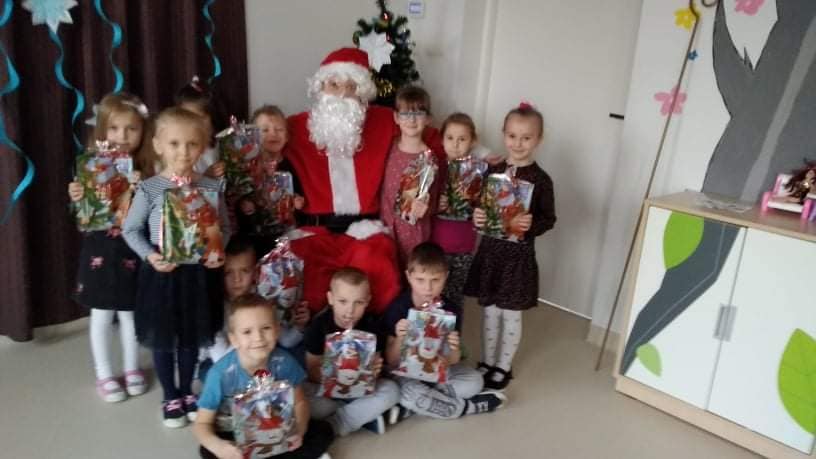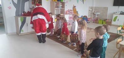 Dzisisj w naszym przedszkolu pojawił się długo oczekiwany gość Święty Mikołaj. Pomimo braku śniegu we wczesnych godzinach rannych przybył do przedszkola. Na jego wizytę dzieci cierpliwie czekały. Powitały Św.Mikołaja wierszem i piosenką. Spotkanie z Mikołajem minęło w bardzo miłej atmosferze i przyniosło dzieciom wiele radości. Cieszymy się że Św. Mikołaj o nas pamiętał i czekamy na jego wizytę w przyszłym roku.