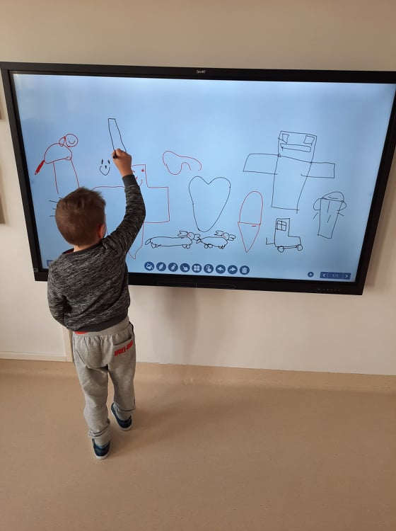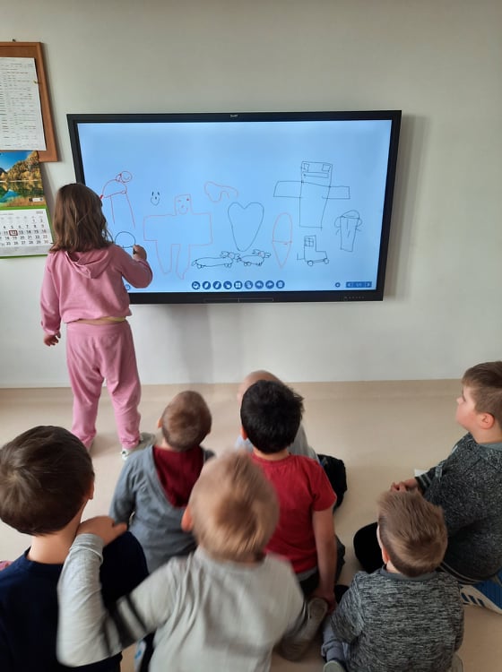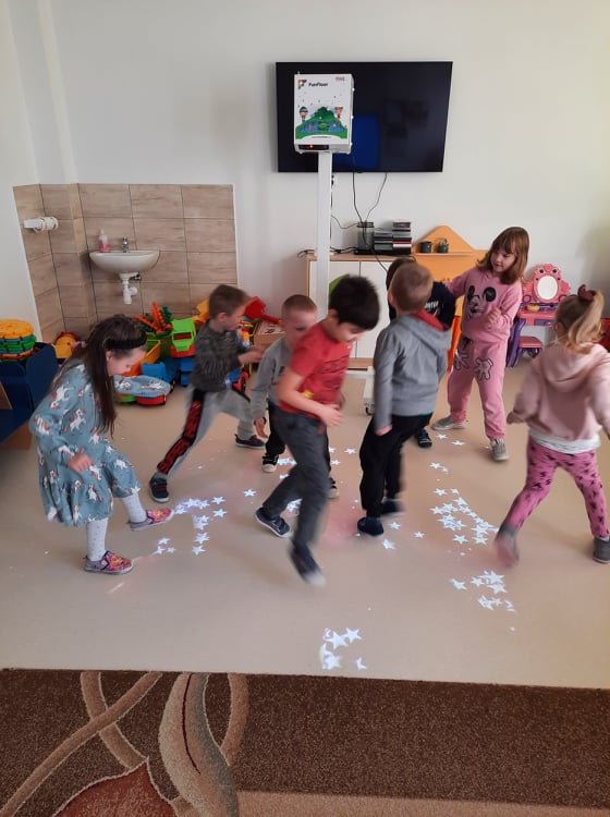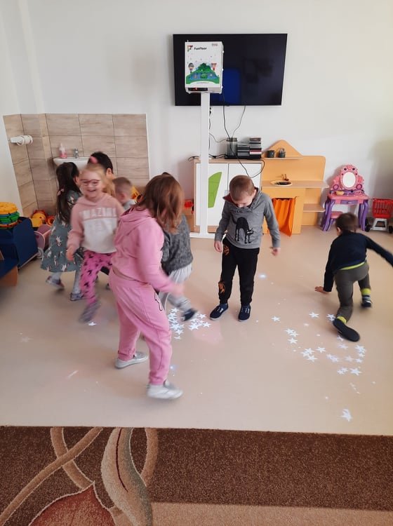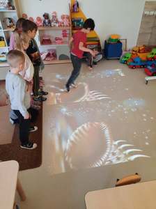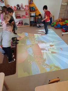 W naszym przedszkolu zostały zamontowane interaktywne pomoce dydaktyczne, o których marzyliśmy od dawna: magiczny dywan przeznaczony do gier i zabaw ruchowych oraz monitor interaktywny wspomagajacy zajęcia dydaktyczne.