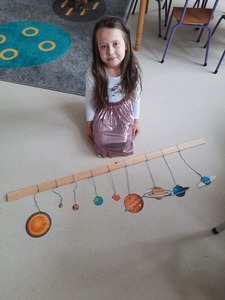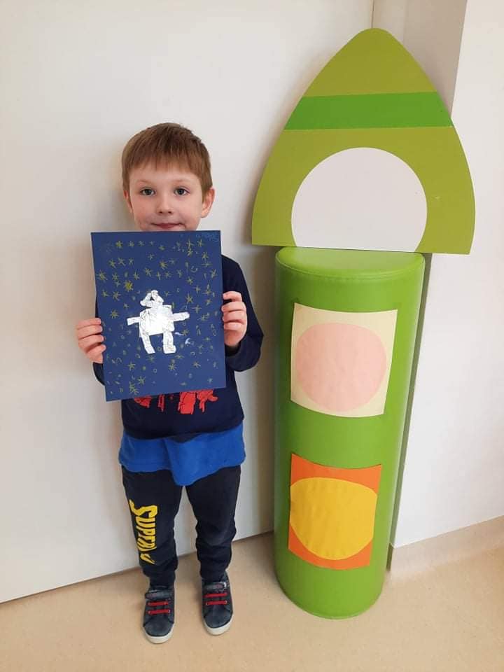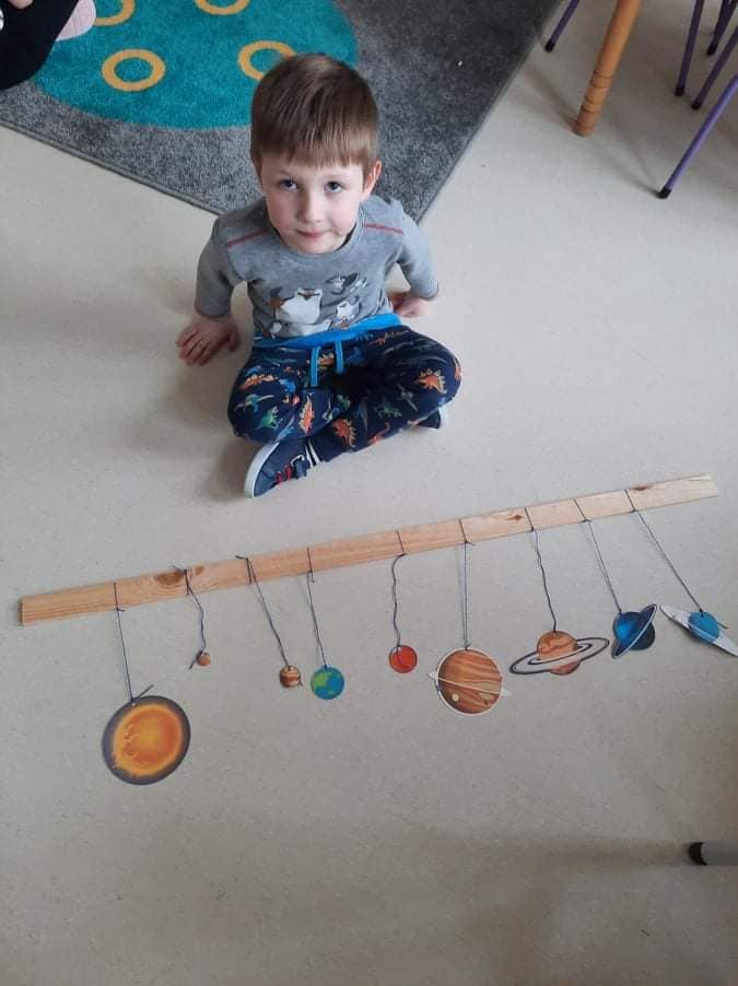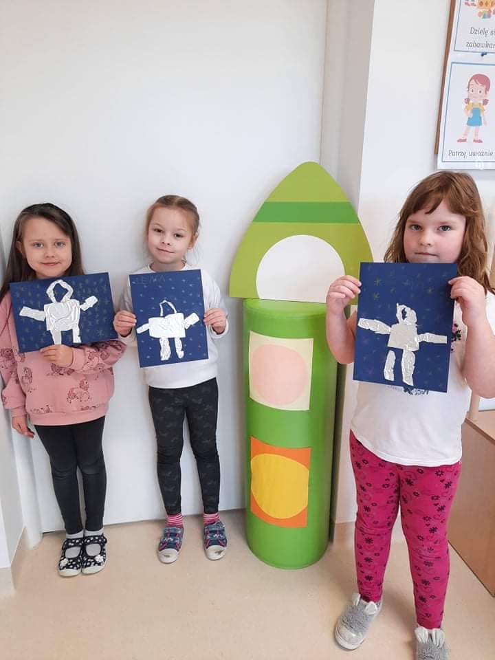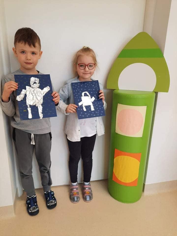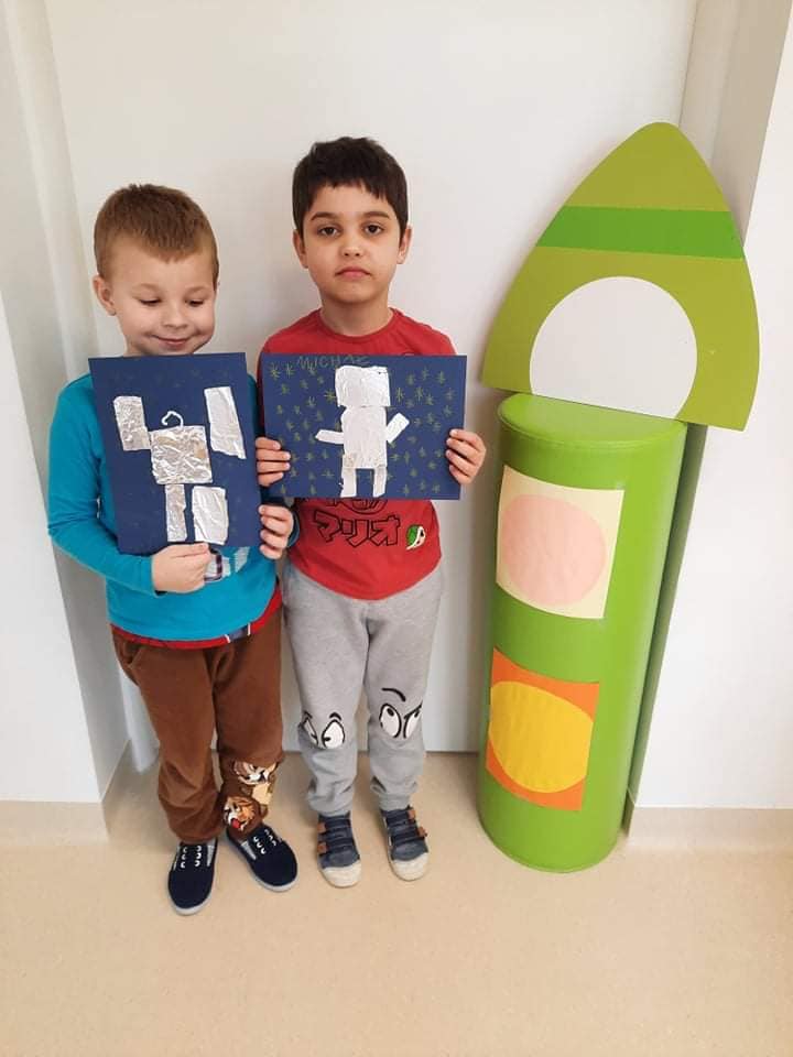 W ostatnim tygodniu 6-latki poznawały Kosmos. Zajęcia miały na celu rozbudzenie zainteresowań dzieci otaczającym nas Wszechświatem. W trakcie różnego rodzaju zabaw i zajęć przedszkolaki poznały planety Układu Słonecznego, poszerzyły słownik pojęciowy o wyrazy związane z Kosmosem i Układem Słonecznym oraz poznały zawód kosmonauty