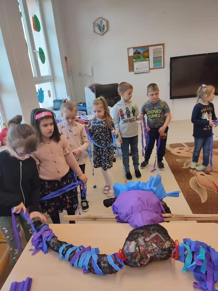Dzisiaj w naszym przedszkolu od rana przedszkolaki przygotowywały się do powitania Wiosny. Dzieci piosenką, tańcem i wierszem powitały najpiękniejszą porę roku Wiosnę. Starsze przedszkolaki zrobiły ekologiczną Marzannę, którą później,,wypędziły" z przedszkola. Młodsze dzieci wykonały Gaik-Maik-Symbol powitania Kalendarzowej wiosny-,,, Wiosna, wiosna Przybywaj.... Udział w obchodach tej niezwykle ciekawej tradycji sprawił dzieciom ogromną frajdę. Przybliżył dzieciom w sposób praktyczny staropolską tradycję i co najważniejsze poszerzył wiedzę i doświadczenie dzieci.