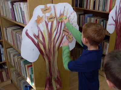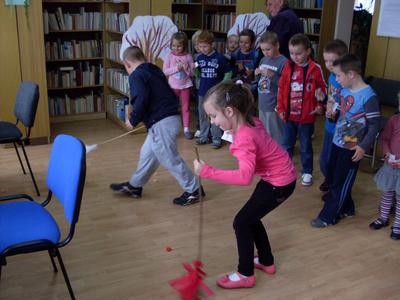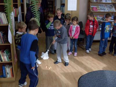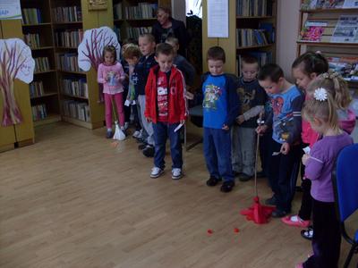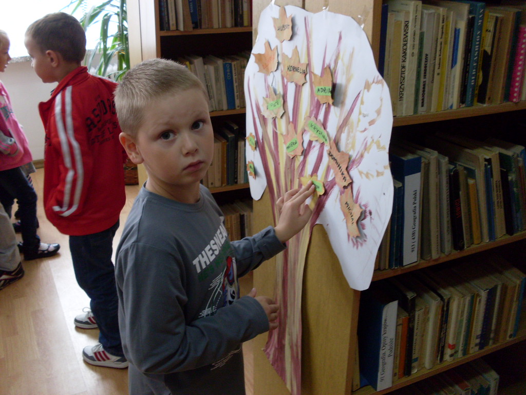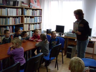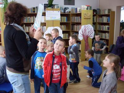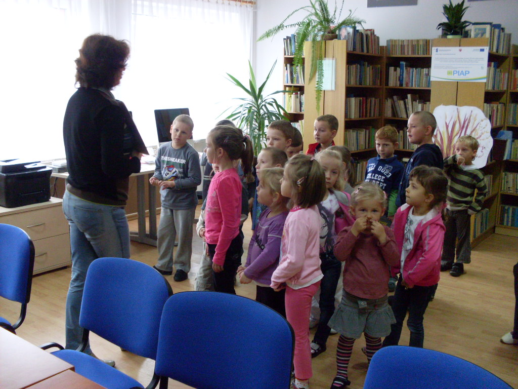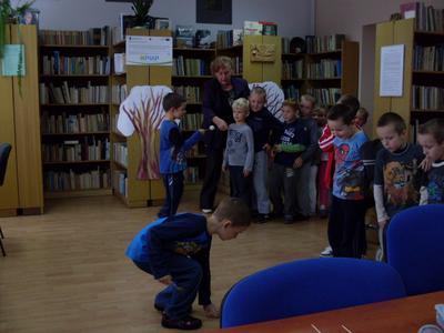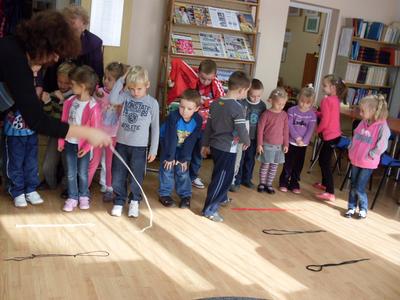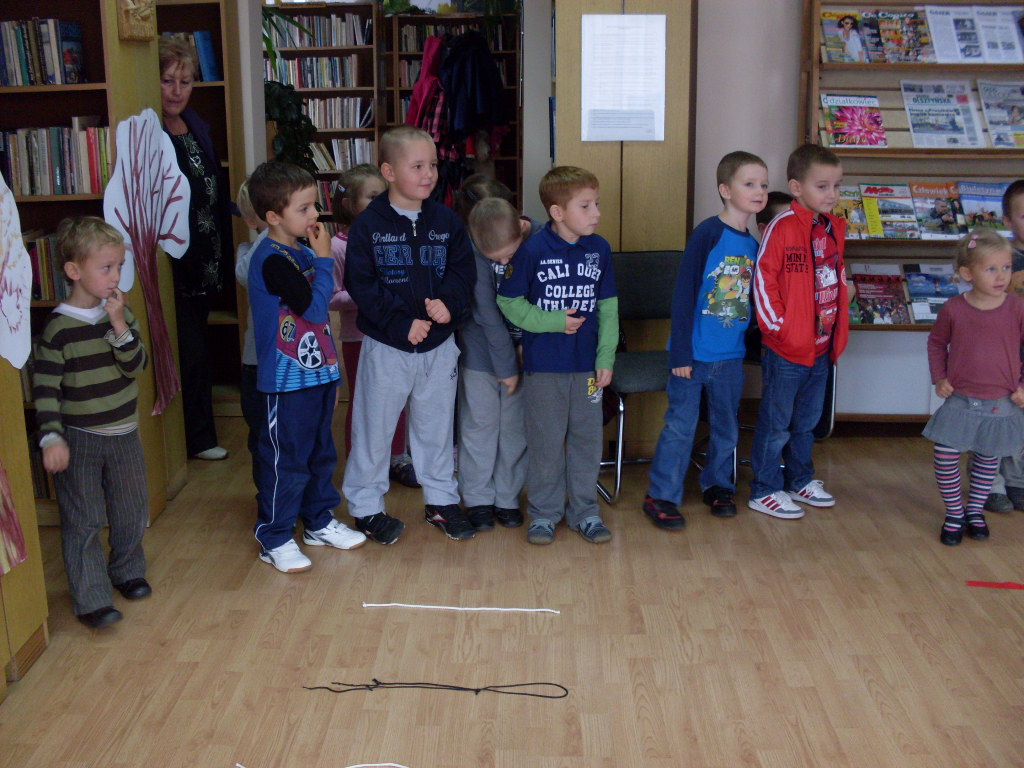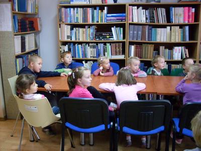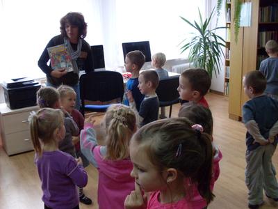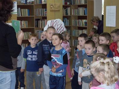 Od września, jak co roku, nawiązana została współpraca naszego przedszkola z Biblioteką w Gminnym Centrum Kultury. Zaplanowany cykl spotkań obejmuje wszystkie grupy wiekowe, które w wyznaczonym terminie będą kolejno odwiedzały bibliotekę. Pierwsze takie spotkanie odbyło się 3 października , a tematem wiodącym byli bohaterowie książek dla najmłodzszych . Przedszkolaki przyglądnęły się wypożyczalni, gdzie jest dużo półek z książkami i czytelni, gdzie można w ciszy i skupieniu na miejscu pooglądać lub poczytać wybraną książkę. Pani Beata Grudzińska, kierownik biblioteki,"oczarowała" przedszkolaków zagadkami i ciekawymi zabawami, które uatrakcyjniły całe spotkanie.