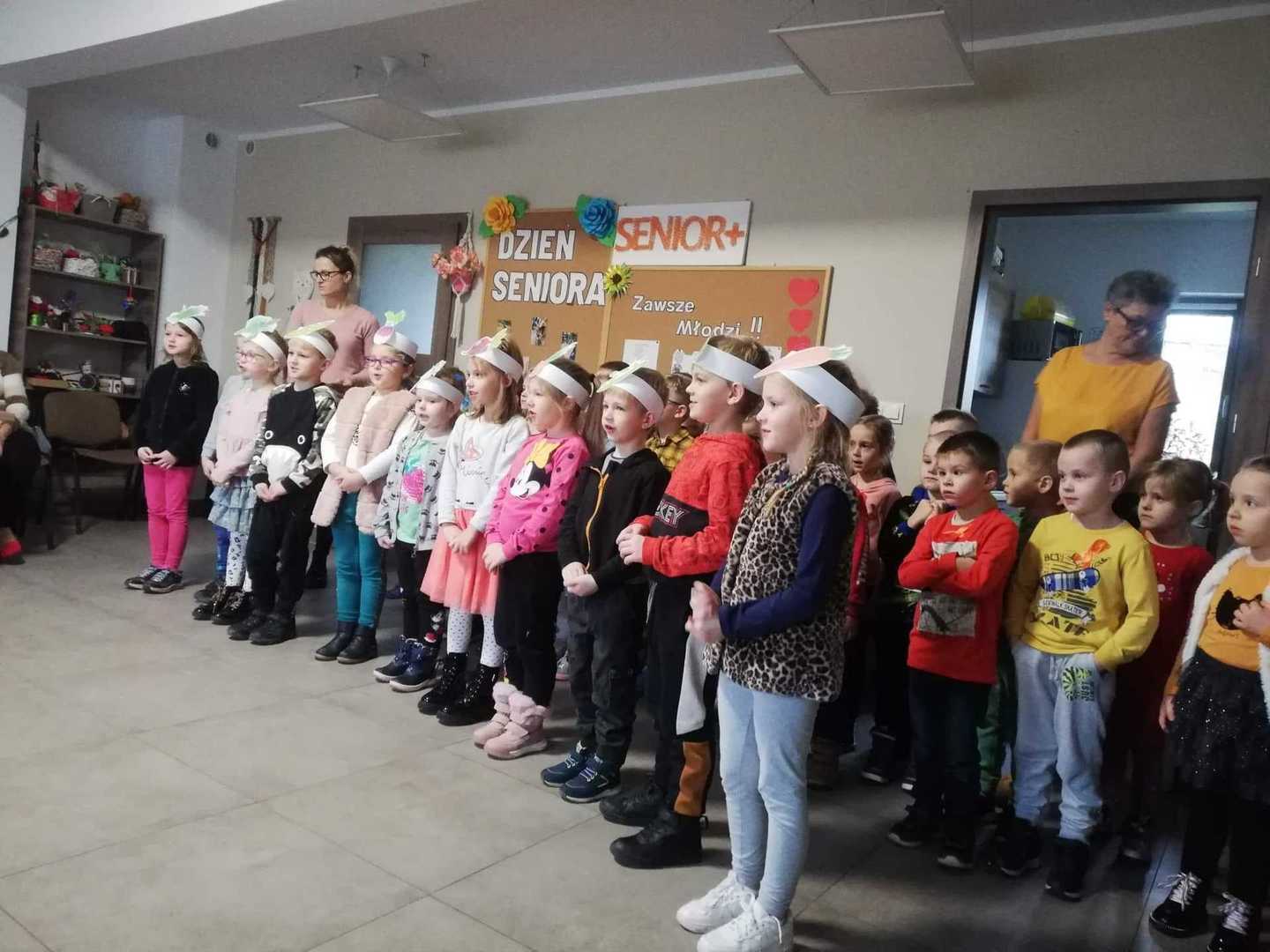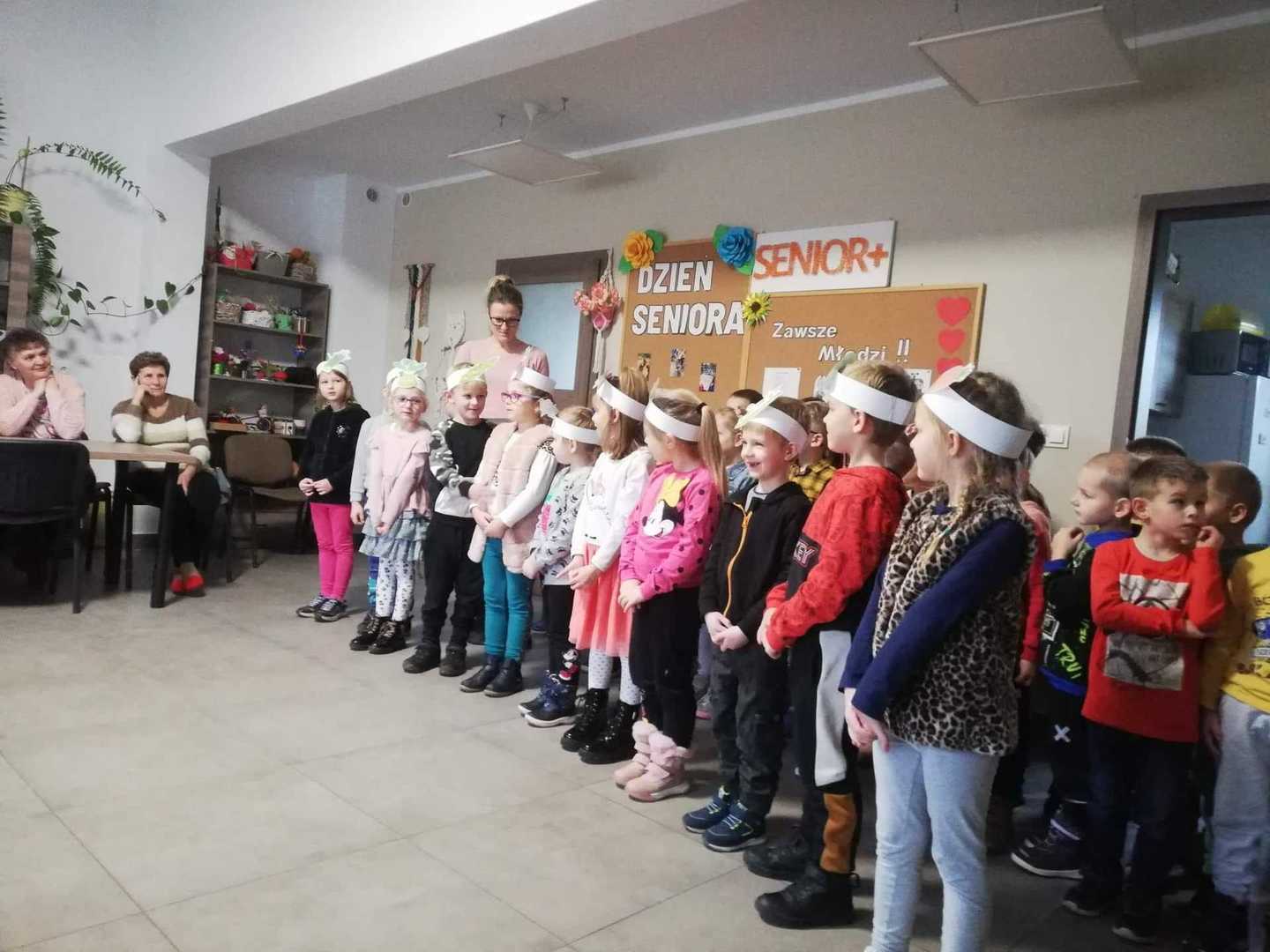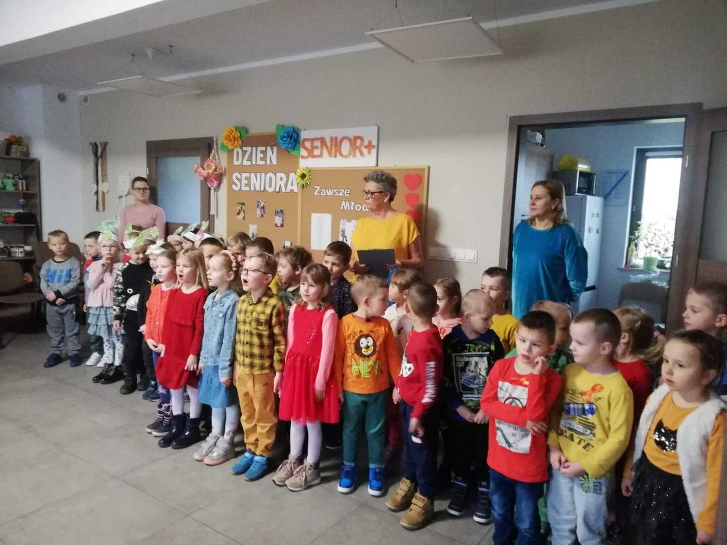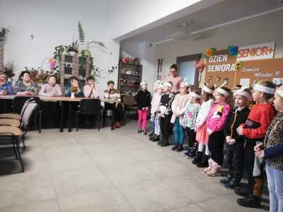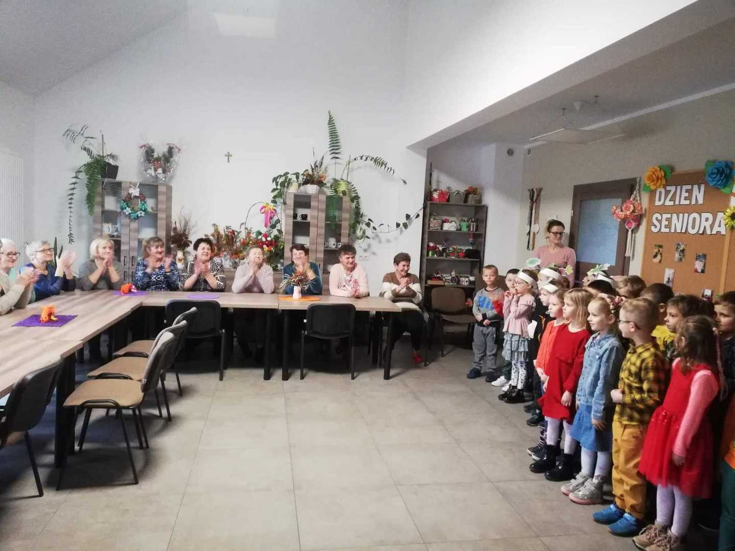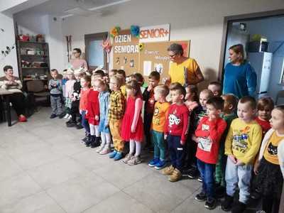 Z okazji Dnia Seniora nasze przedszkolaki wraz z wychowawczyniami wybrały się do pobliskiego Klubu Seniora, aby złożyć najserdeczniejsze życzenia z okazji ich święta. Dzieci wręczyły wykonane laurki- filiżanki z herbatką. Podarowały Seniorom także herbatę, którą zbierały w ramach akcji ,,Herbatka dla seniora". Z pewnością wizyta przedszkolaków sprawiła wiele radości i poczucie, że Seniorzy pełnią ważną rolę w społeczeństwie i zawsze pamięta się o nich.