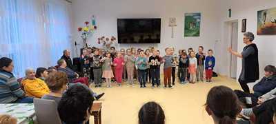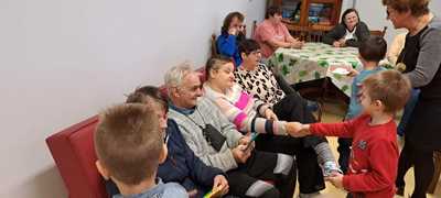 Z okazji Międzynarodowego Dnia Osób Niepełnosprawnych nasze przedszkolaki złożyły życzenia uczestnikom Środowiskowego Domu Samopomocy w Kowalach Oleckich oraz wręczyły laurki.