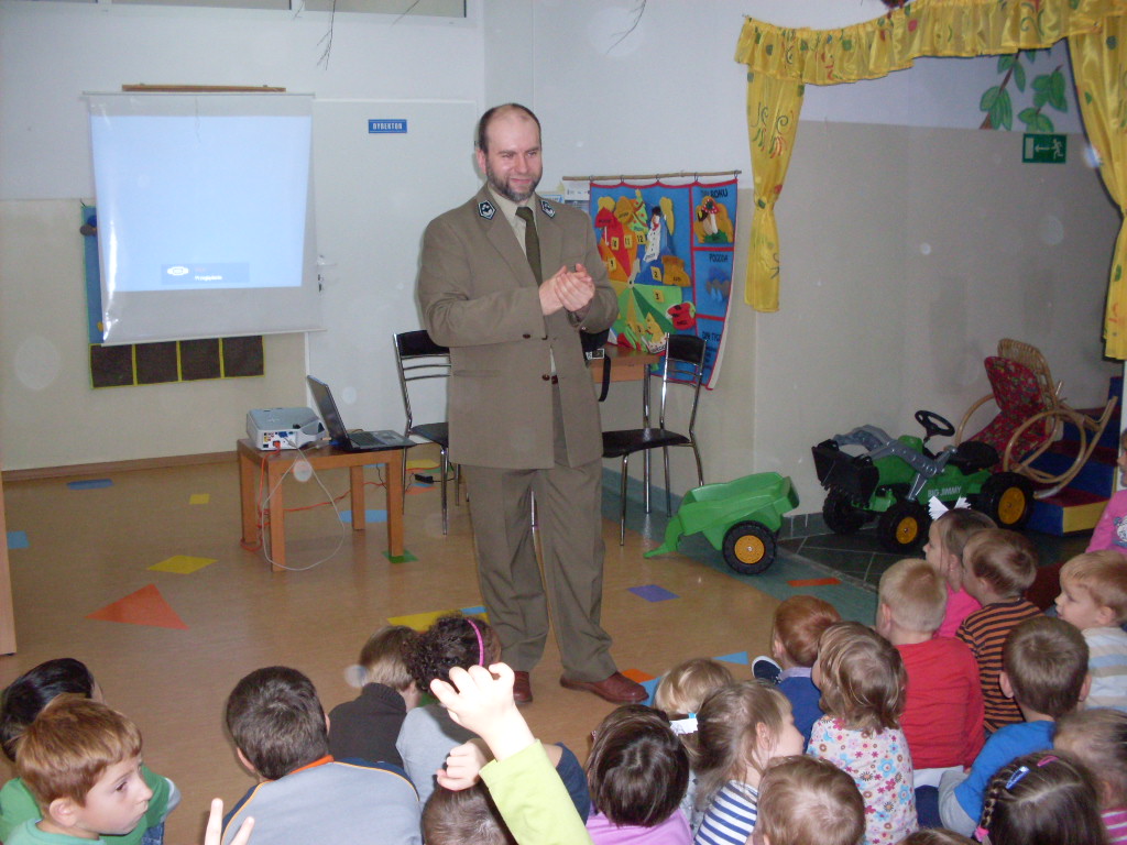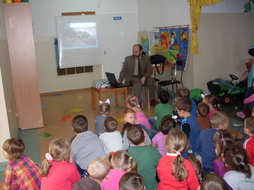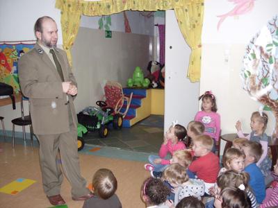 W dniu 17. 10. 2012r. wychowankowie z przedszkola spotkali się z panem leśniczym, który zademonstrował swój mundur, a także zapoznał dzieci z zasadami bezpiecznego korzystania z dóbr lasu.