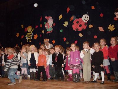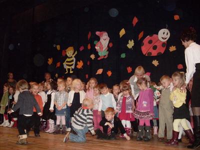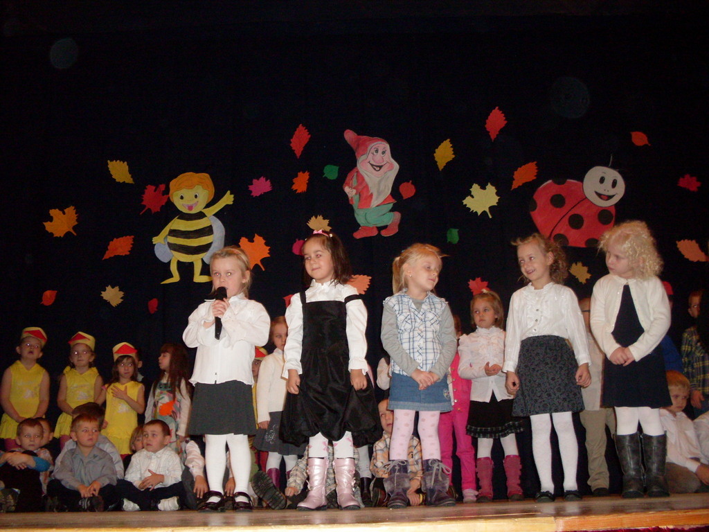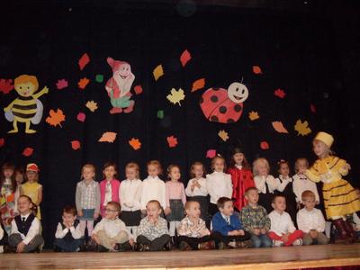 Radośnie zabrzmiał hymn ,,Krasnoludków”' ,,Biedronek” i ,,Pszczółek''.