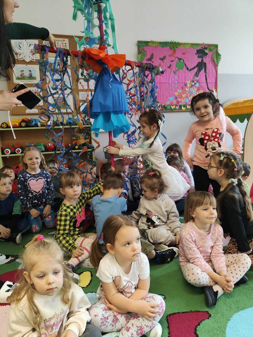 Wczoraj w naszym przedszkolu obchodziliśmy Pierwszy Dzień Wiosny oraz solidaryzując się z osobami z Zespołem Dawna,, Dzień Kolorowej Skarpetki. "Starsze dzieci wraz z rodzicami przygotowały Gaik-Maik witając Wiosnę, a młodsze dzieci ,, Marzannę ekologiczną"-żegnając zimę. Dziękujemy rodzicom za obecność na zajęciach.