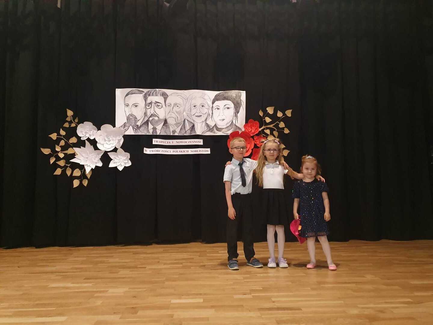 W dniu 07.06.2023 r. dzieci z Przedszkola Samorządowego w Kowalach Oleckich wzięły udział w konkursie pod hasłem: "Tradycja i współczesność w twórczości polskich noblistów". Tematyka konkursu była bardzo trudna, jednak dzieci doskonale się spisały. Podczas występów na scenie - dzieci wspaniale
