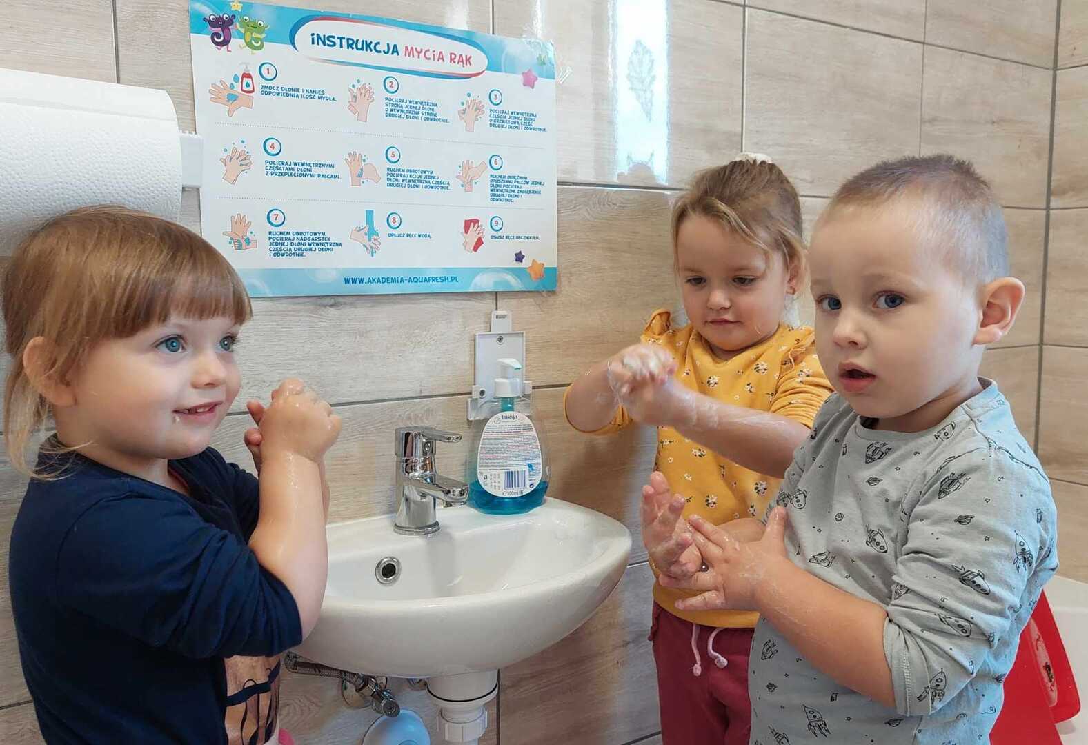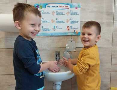 W naszym przedszkolu obchodziliśmy Światowy Dzień Mycia Rąk. Celem tego dnia jest uświadomienie dzieciom jak ważne znaczenie ma w ich życiu codzienne mycie rąk. We wszystkich grupach przedszkolnych odbyły się rozmowy na temat zarazków, bakterii i wirusów, które dostają się do naszych organizmów poprzez brudne ręce.