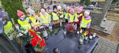 Nasze przedszkole kolejny już raz przystąpiło do akcji Ministerstwa Edukacji i Nauki ,,Szkoła pamięta". W naszym przedszkolu od najmłodszych lat przekazujemy ważną wartość, jaką jest pamięć zarówno o naszych bliskich, których już nie ma, jak i tych, którzy zapisali się na kartkach naszej historii. Udział przedszkolaków w akcji ,,Szkoła pamięta" to wspaniała lekcja historii, pamięci oraz kulturalnego zachowania się w miejscach publicznych.