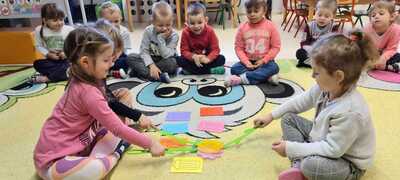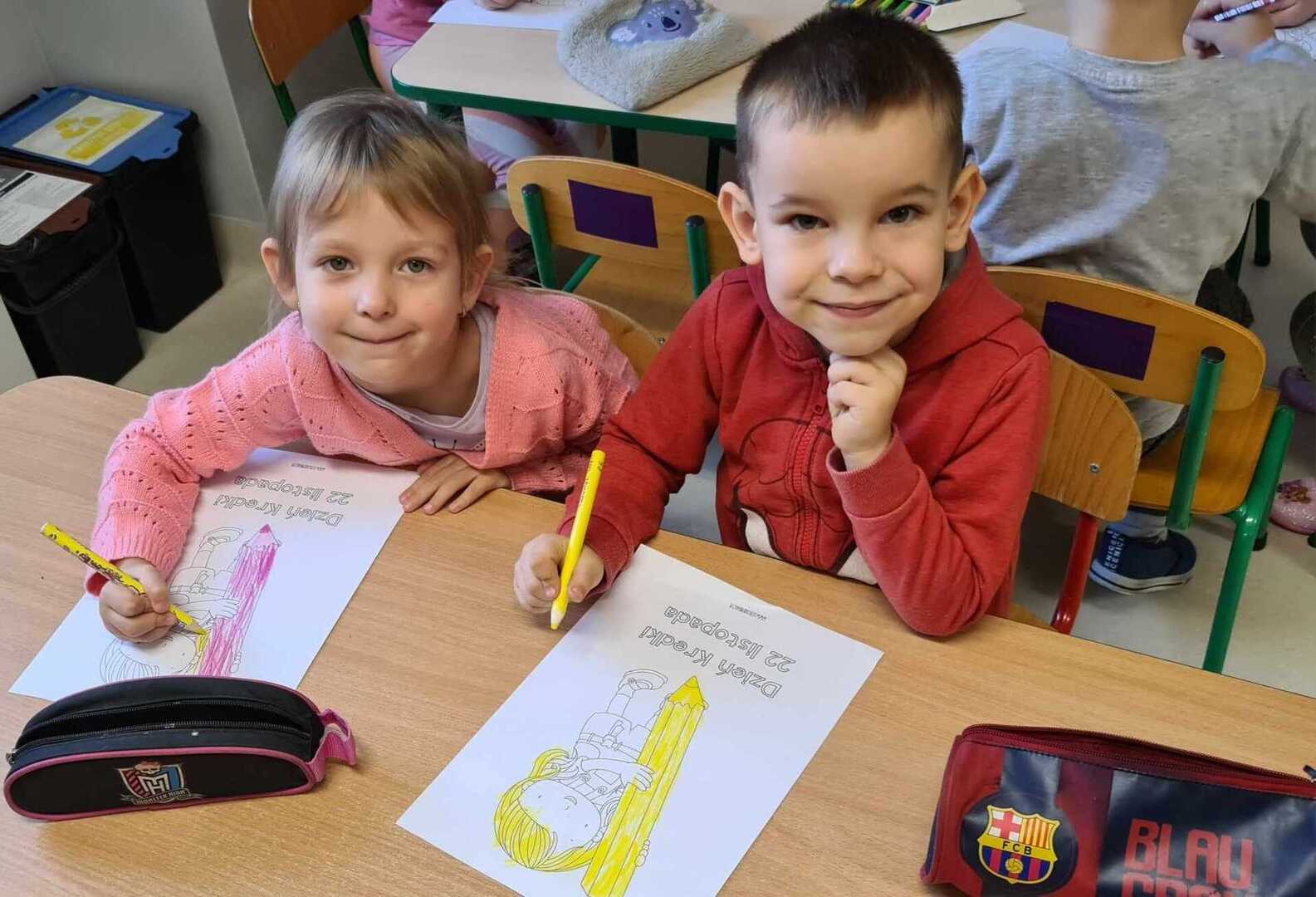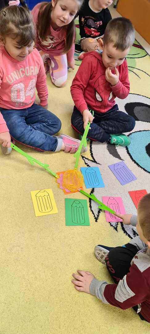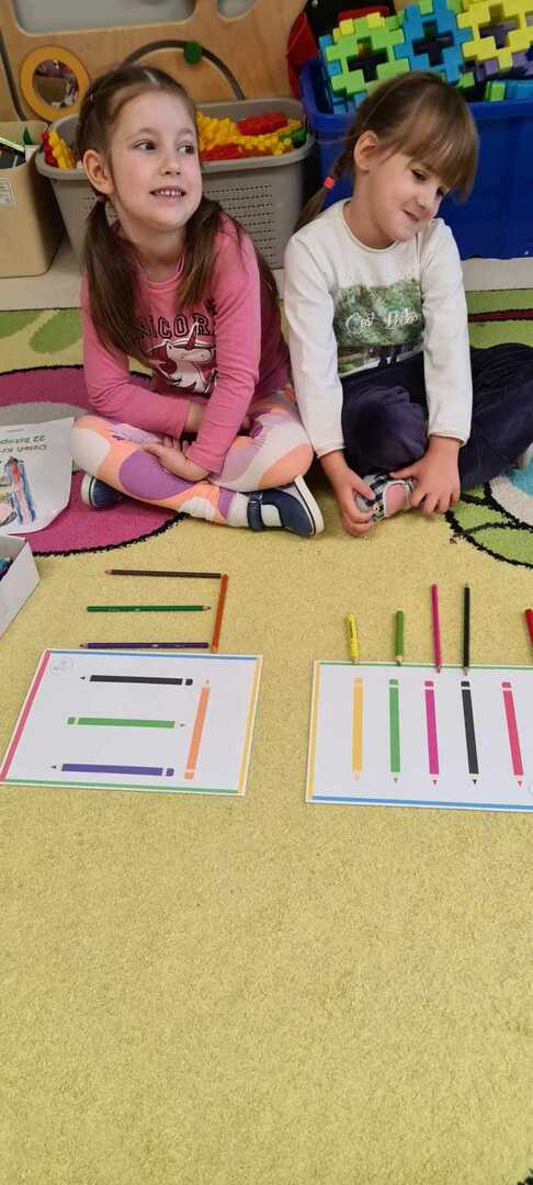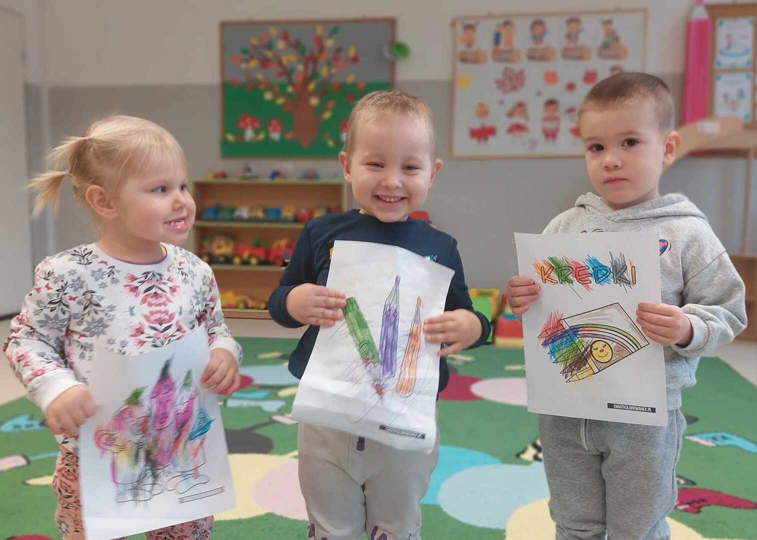 ,,Kolorowe kredki w pudełeczku noszę, kolorowe kredki bardzo lubią mnie, kolorowe kredki kiedy je poproszę, namalują wszystko to co chcę".