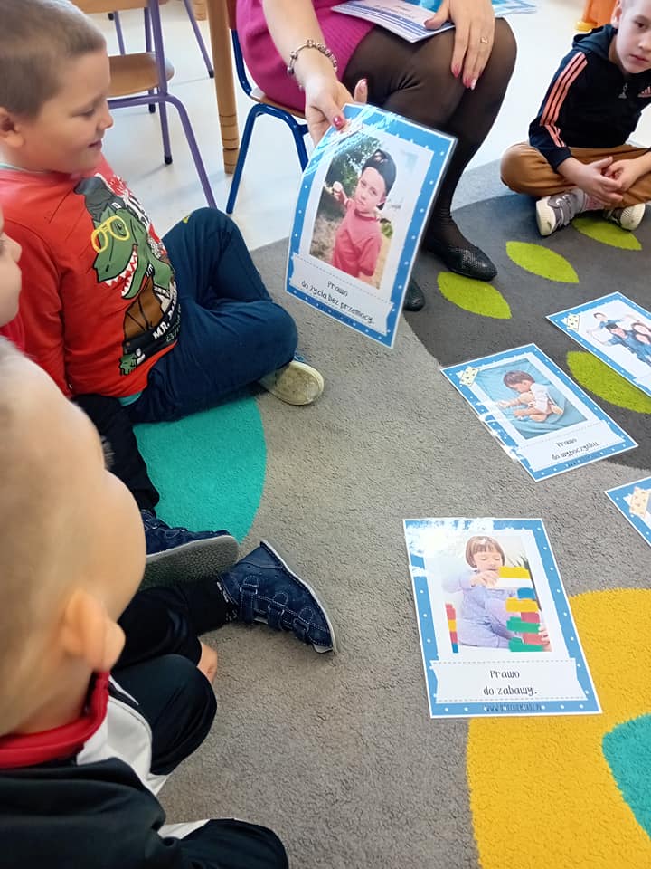 W dniu 20.11.2023 w Przedszkolu Samorządowym w Kowalach Oleckich odbyły się specjalne zajęcia związane z prawami dziecka, prowadzone we współpracy z pedagogiem specjalnym oraz psychologiem. Podczas tych zajęć dzieci miały okazję poznać podstawowe prawa przysługujące każdemu dziecku, a także dyskutować na ich temat w sposób dostosowany do ich wieku i zrozumienia. Dzięki kreatywnym metodom pracy zespołowej, dzieci miały szansę wyrazić swoje myśli i emocje dotyczące praw, co sprzyjało budowaniu świadomości oraz zrozumienia istoty tychże praw w ich codziennym życiu. Zajęcia były przeprowadzone w sposób atrakcyjny i angażujący, co przyczyniło się do wzbogacenia wiedzy dzieci na temat ich własnych praw oraz sposobów ich realizacji.