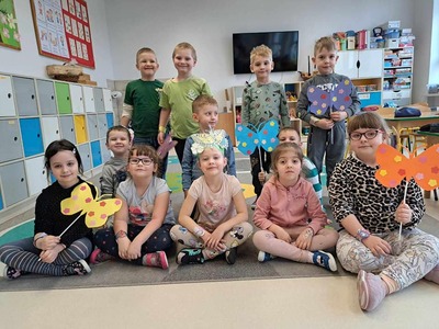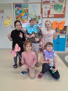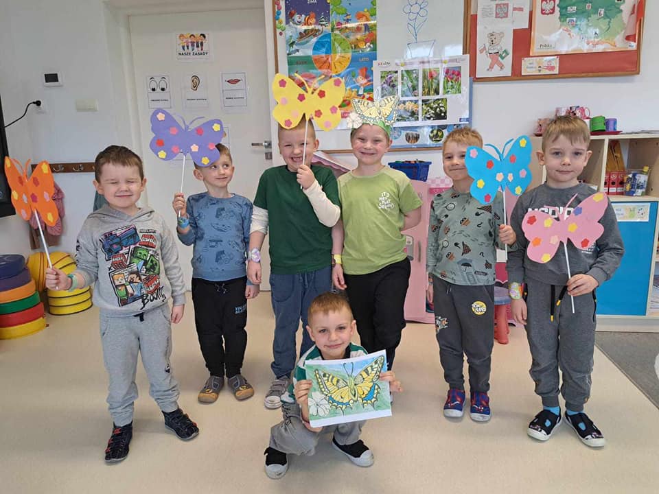 ....jesteśmy motylki cały dzień fruwamy, najpiękniejszych kwiatów na łące szukamy. W przedszkolu nastały piękne chwile, gdy do niego zawitały Motyle. Będą skakać i zadziwiać, wszyscy będą je podziwiać. Pamiętajcie wszyscy kochajcie motyle, one rozweselają najsmutniejsze chwile....