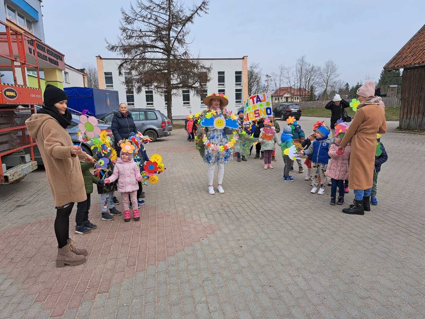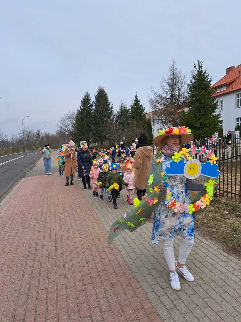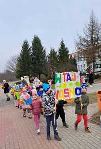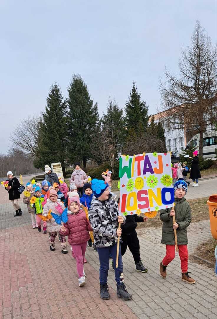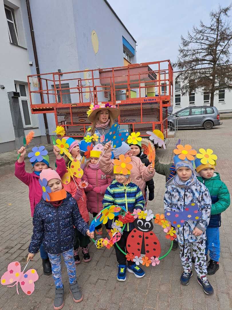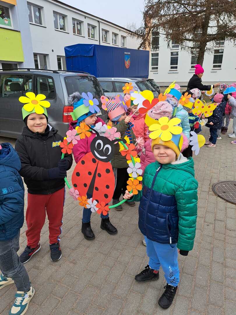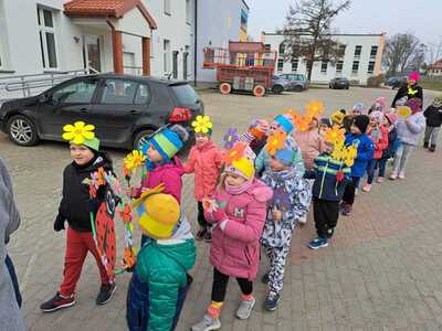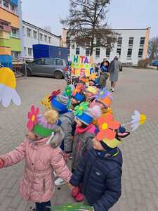 Dzisiaj w naszym przedszkolu uroczyście powitaliśmy Pierwszy Dzień Wiosny. Przedszkolaki radośnie maszerowały w wiosennym korowodzie z wiankami i wiosennymi ozdobami.