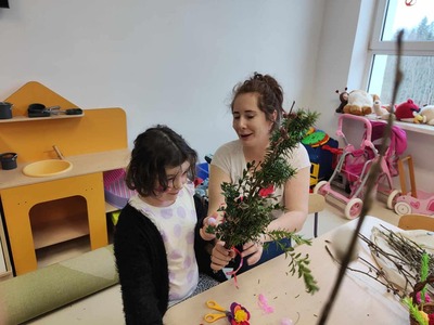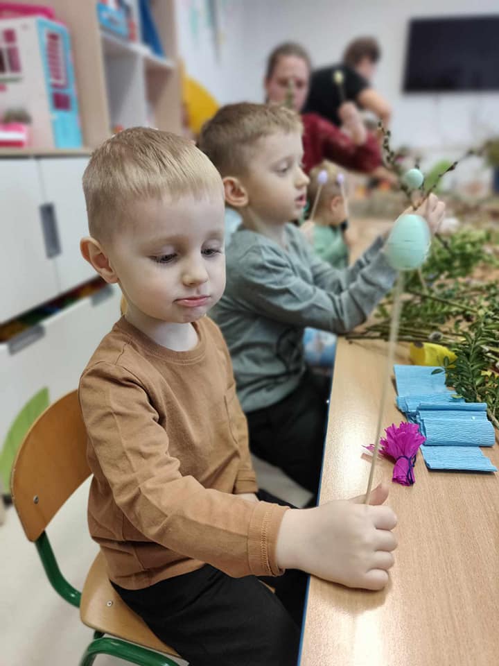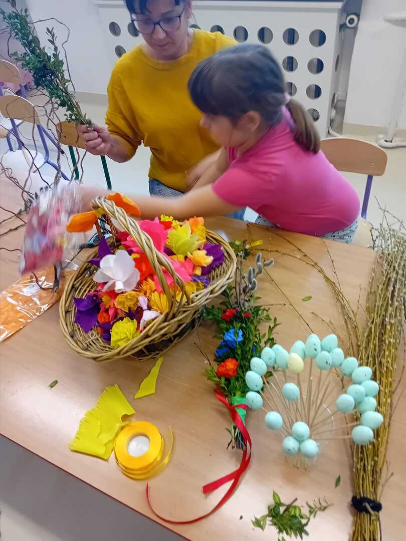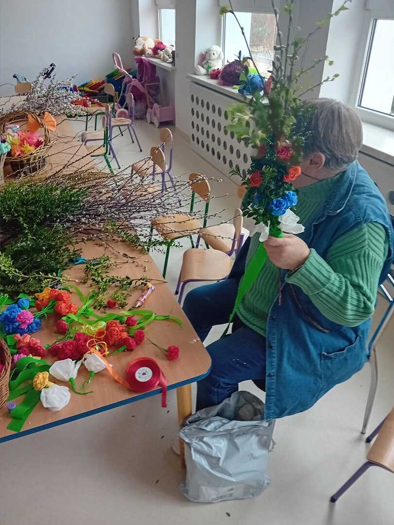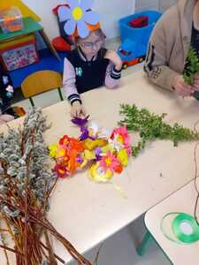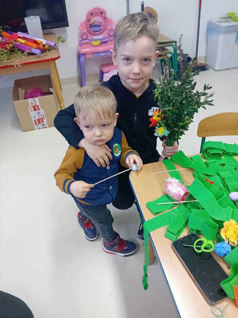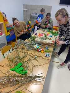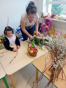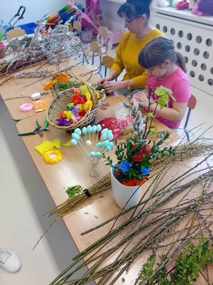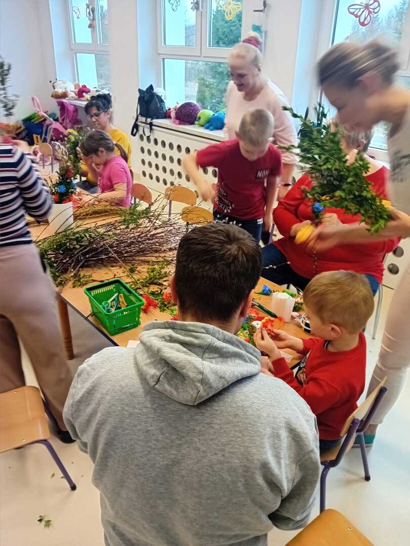 Z okazji nadchodzących Świąt Wielkanocnych w naszym przedszkolu odbyły się warsztaty wyrobu palem wielkanocnych. Celem zajęć było przybliżenie tradycji Świąt Wielkanocnych, doskonalenie tradycji współpracy, rozbudzenie poczucia estetyzmu i pobudzenie wyobraźni. Dziękujemy, Pani Janinie za swoją obecność i pokazanie nam technik robienia kwiatków oraz palem. Podczas warsztatów dzieci wraz z rodzicami wykonały palmę wielkanocną z bukszpanu, różnorodnych zielonych gałązek, sztucznych kwiatów. Na zajęciach panowała miła i serdeczna atmosfera. Dziękujemy rodzicom za przybycie i udział w tym wydarzeniu.