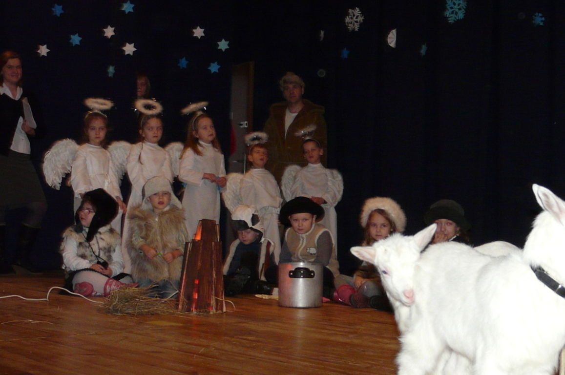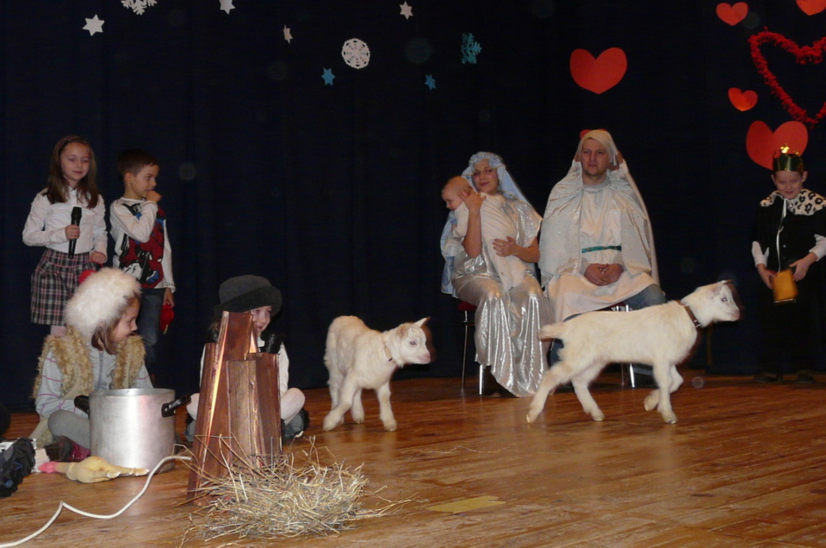 Nowatorsko rozpoczęliśmy Nowy Rok 2013. A to za sprawą Jasełek, w których, oprócz tradycyjnego aktorstwa dzieci, wystąpili też ich rodzice, dziecko w roli Jezuska oraz żywe koziołki. ,,Znana od lat Historia, ta sama fabuła. Nic nowego. A jednak co roku inna. Jak inni jesteśmy-my- aktorzy Pana Boga”.