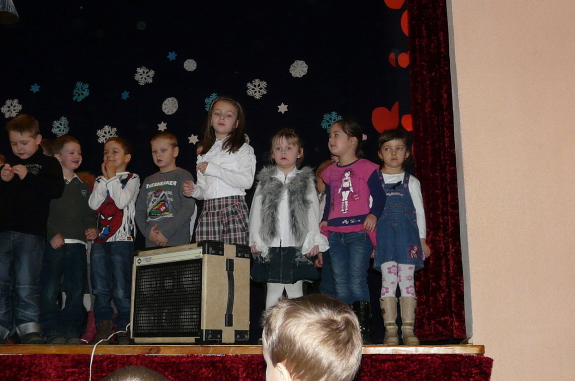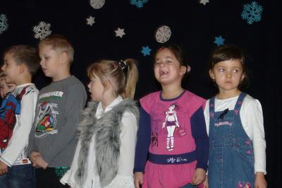 Przed liczną widownią przedszkolaki przedstawiły część artystyczną z okazji Choinki Noworocznej oraz Dnia Babci i Dziadka.