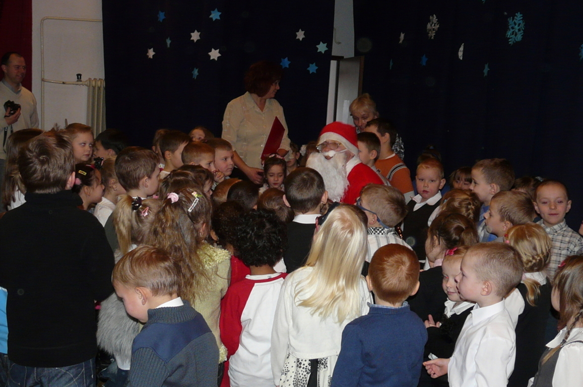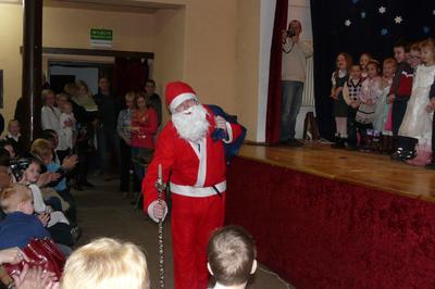 Po przedstawieniu były również dobre nastroje, bo zaszczycił nas swoją obecnością, oczekiwany przez dzieci, Święty Mikołaj, który obdarował dzieci paczkami.