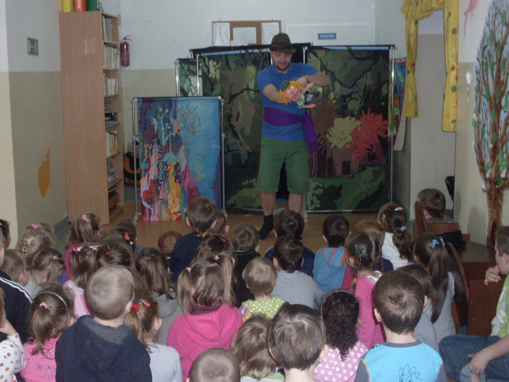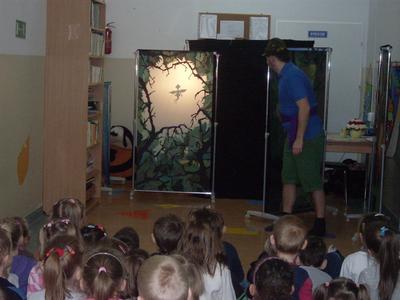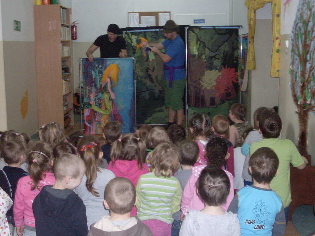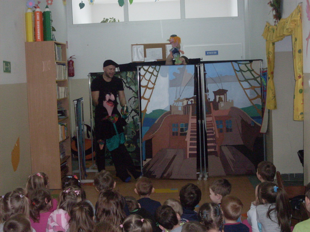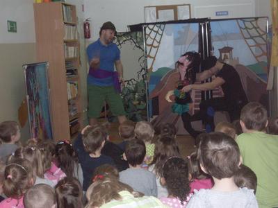 Dzisiaj dzieci przeżyły kolejny ciekawy dzień. Aktorzy ze Studia Artystycznego ,,Karuzela” z Białegostoku przenieśli przedszkolaków do krainy dziecięcej szczęśliwości – Nibylandii. W przedstawieniu pt. ,,Ostatni lot Piotrusia Pana” aktorzy odwołali się do wyobraźni dzieci i wygrali walkę o ich uwagę nawet z najlepszą zabawką.