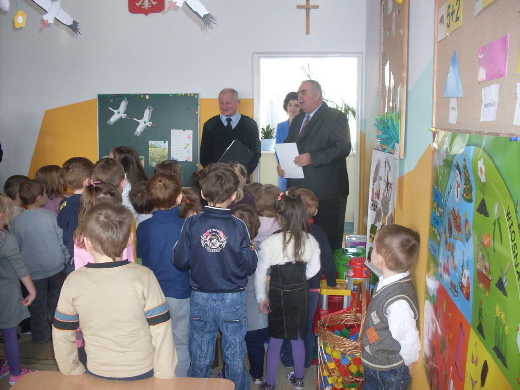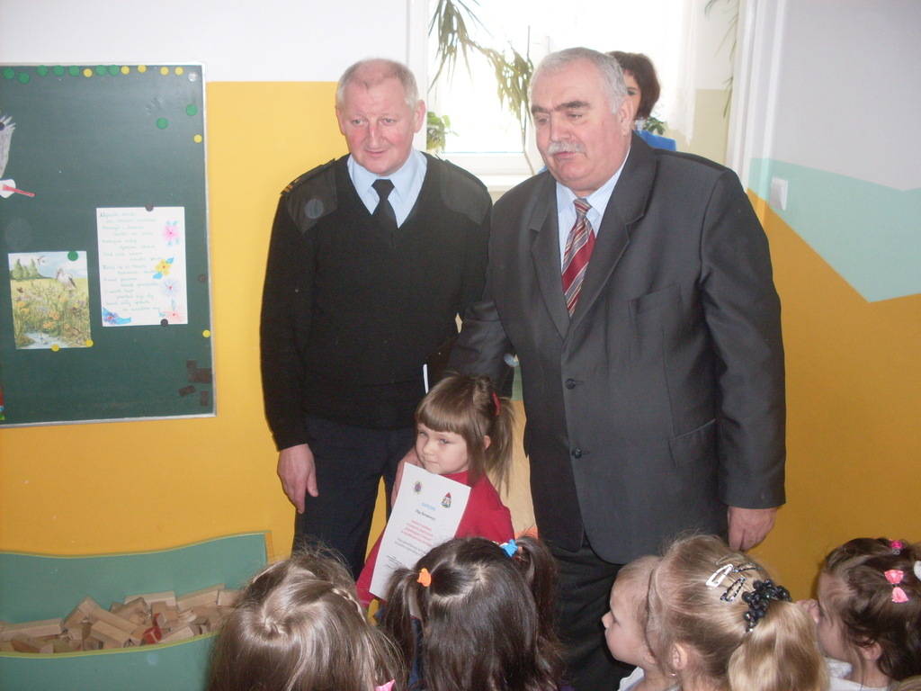 W tegorocznej edycji ogólnopolskiego konkursu plastycznego pod nazwą „Zapobiegajmy pożarom” została wyróżniona praca Olgi Bernatowicz. Przedstawiciele straży pożarnej (mł.bryg. Tomasz Milewski oraz prezes Stanisław Ciechanowicz) osobiście wręczyli w przedszkolu autorce nagrodę i dyplom.
