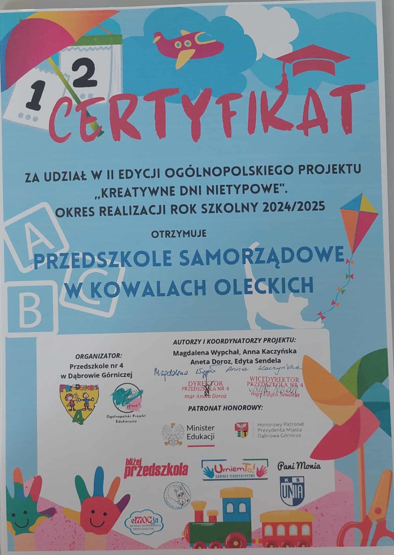 Nasze przedszkole wzięło udział w projekcie ,,Kreatywne Dni Nietypowe".