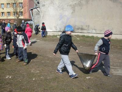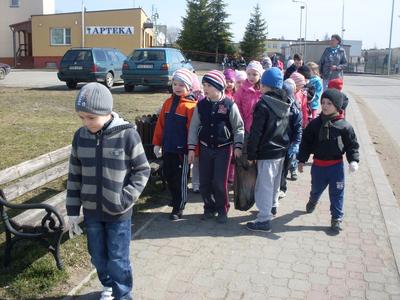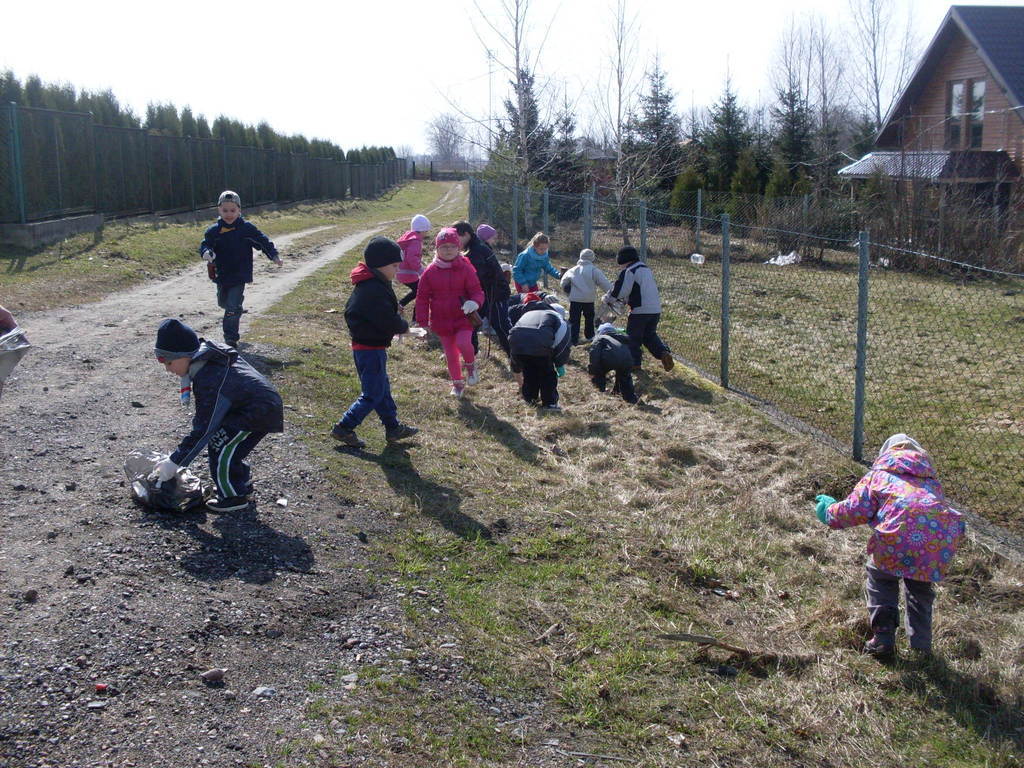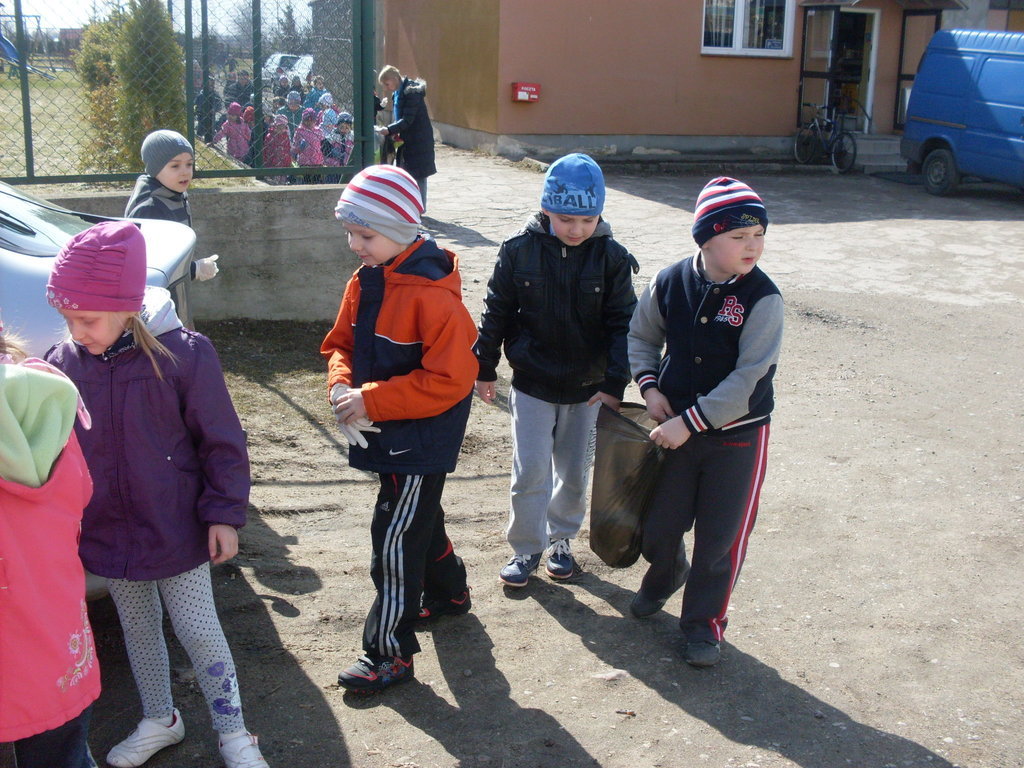,,sprzątając świat”- fragment Kowali Oleckich. W ciągu jednego symbolicznego Dnia Ziemi nie rozwiążemy globalnego problemu śmieci. To okazja do uporządkowania wiedzy. Wierzymy, że wyrabianie u małych ekologów wrażliwości, dobrych nawyków, odpowiedzialności za planetę Ziemię zaowocuje w przyszłości.