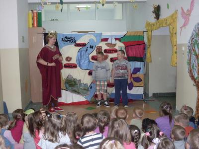 ,,Podróż to jedyny zakup, który uczyni cię bogatszym”. Doświadczyły tego przedszkolaki, mimo, że to była tylko podróż po mapie Polski. W towarzystwie przyjaznego smoka Bazylego dzieci poznały księcia z Wawelu, rybaka, syrenę warszawską oraz ,,małego Polaka”, który wiedział: kim jest, jaki jest jego znak, gdzie mieszka? Mimo pomieszania miast na mapie dzięki pomocy przedszkolaków Bazyli dotarł do swojego dziadka - smoka na Wawelu.