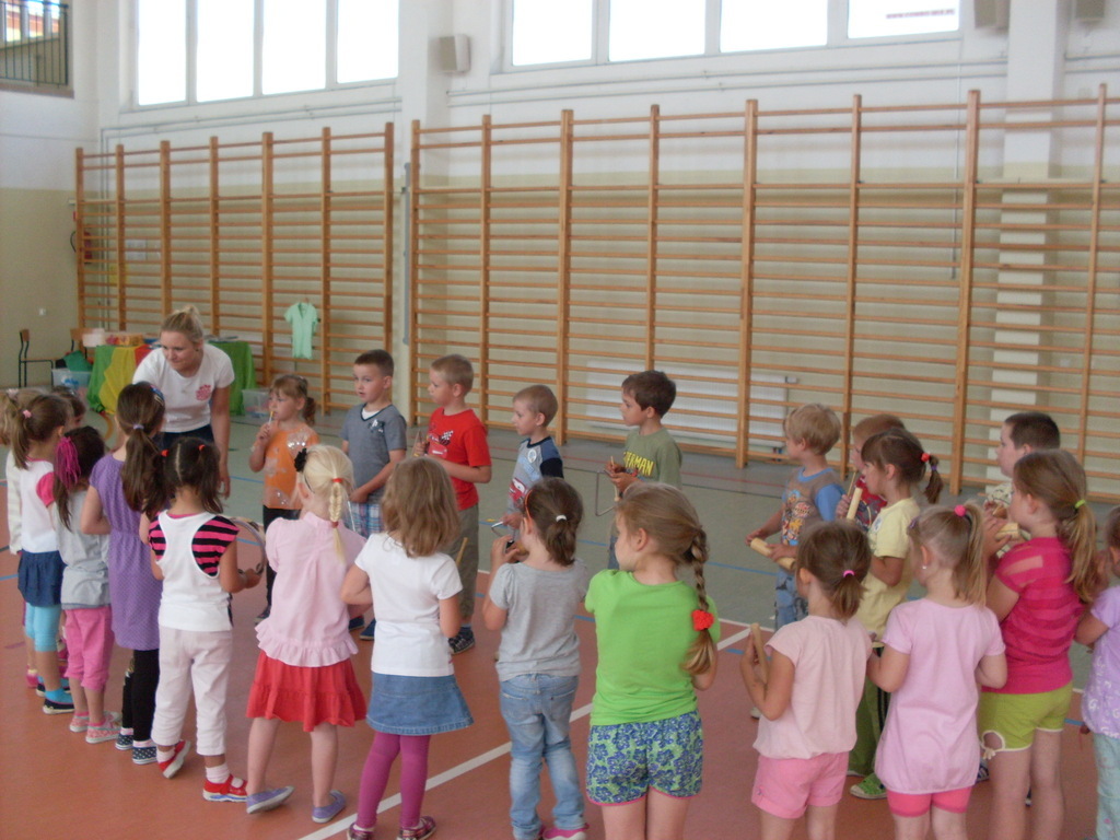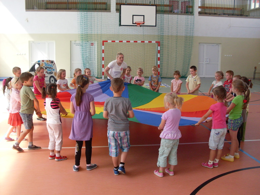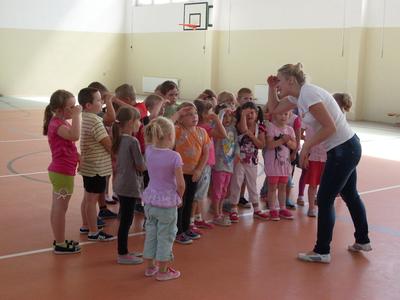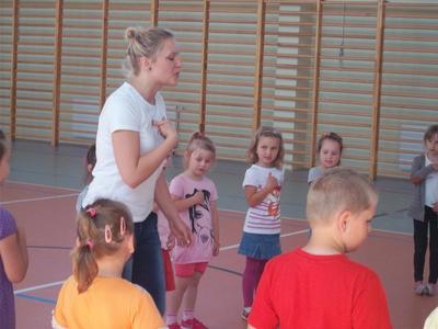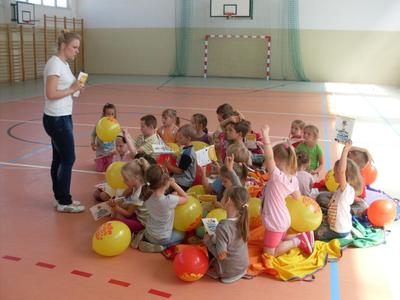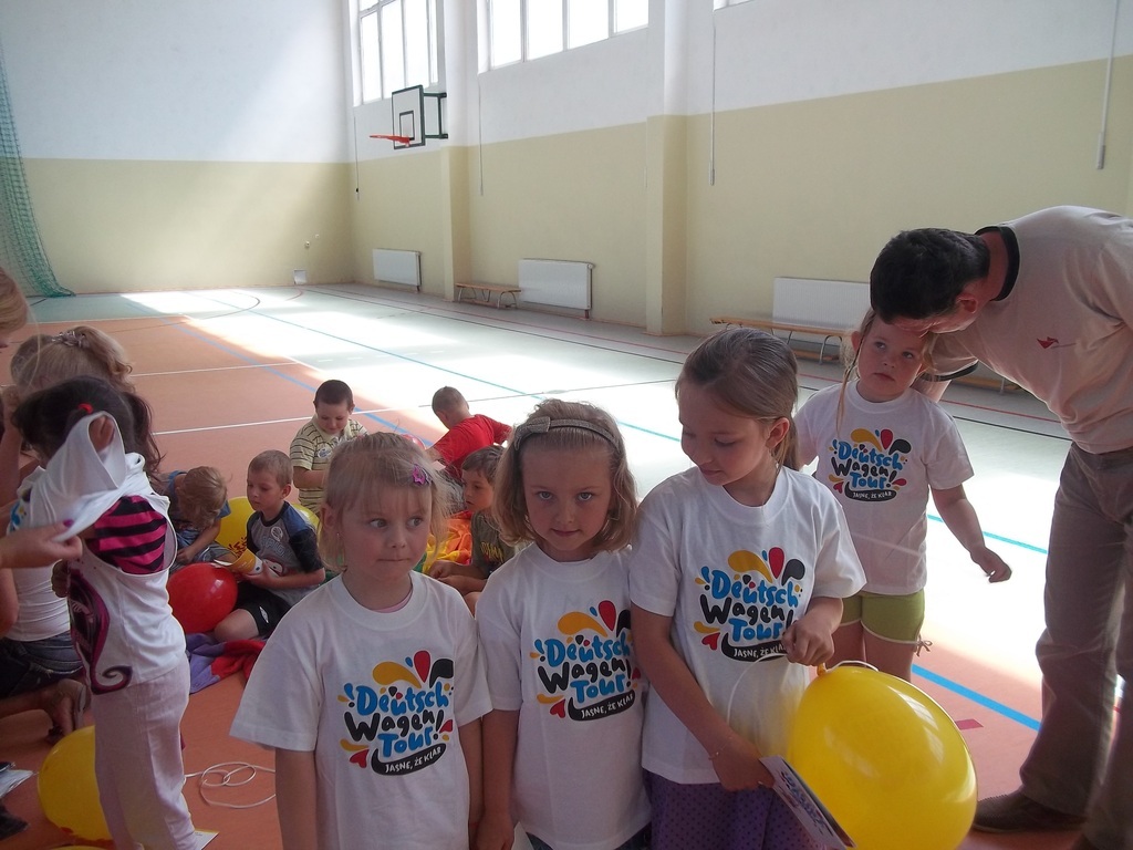 Z inicjatywy nauczycielki j. angielskiego i j. niemieckiego pani Beaty Kozic zostało zorganizowane spotkanie przedszkolaków z lektor Goetche – Institut w Olsztynie. Metodą zabawy pani Magda uczyła dzieci piosenek w języku niemieckim. Spotkanie to zaowocowało też przyswojeniem przez nie kilku słówek w tym języku. Ukoronowaniem zabawy było otrzymanie przez dzieci gadżetów oraz koszulek.