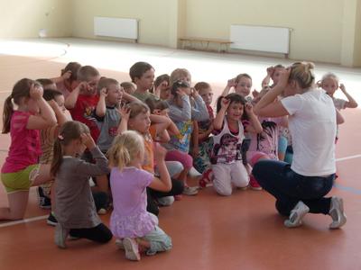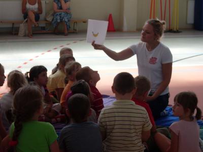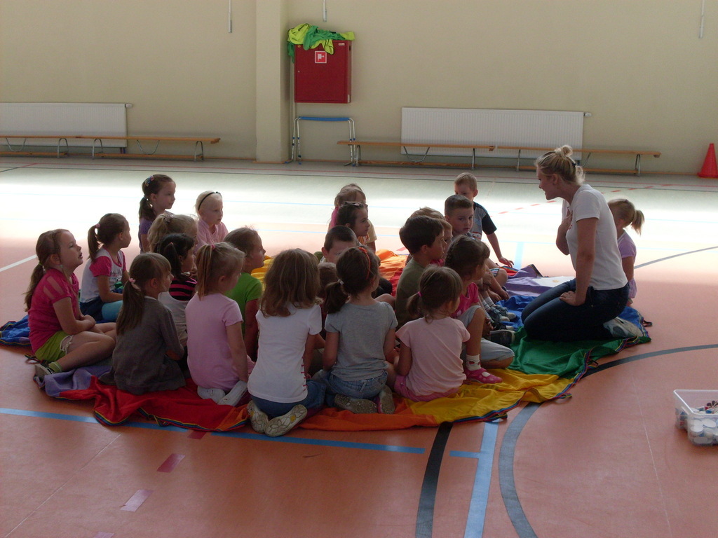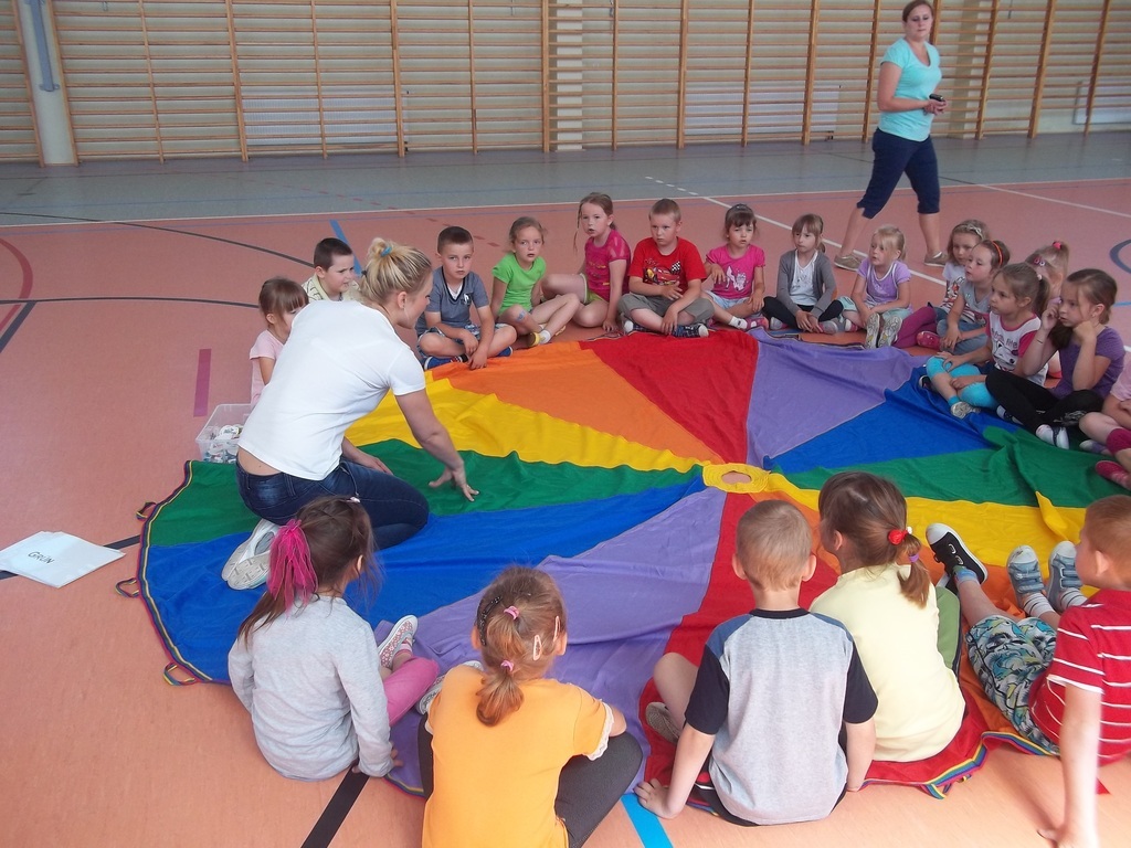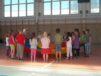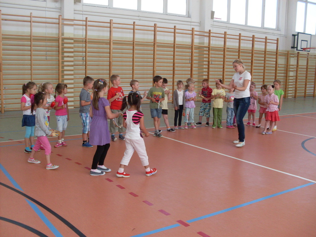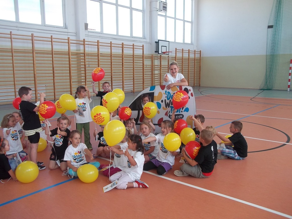 Z inicjatywy nauczycielki j. angielskiego i j. niemieckiego pani Beaty Kozic zostało zorganizowane spotkanie przedszkolaków z lektor Goetche – Institut w Olsztynie. Metodą zabawy pani Magda uczyła dzieci piosenek w języku niemieckim. Spotkanie to zaowocowało też przyswojeniem przez nie kilku słówek w tym języku. Ukoronowaniem zabawy było otrzymanie przez dzieci gadżetów oraz koszulek.