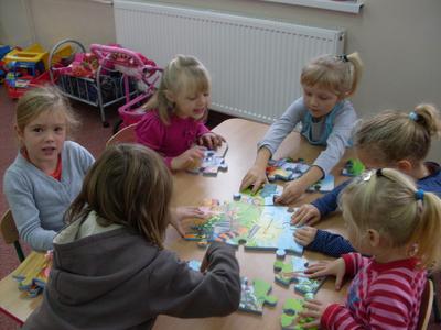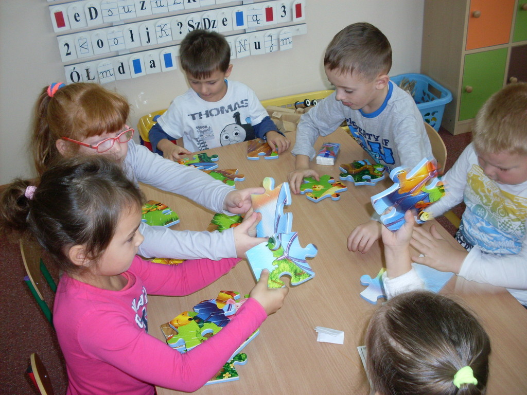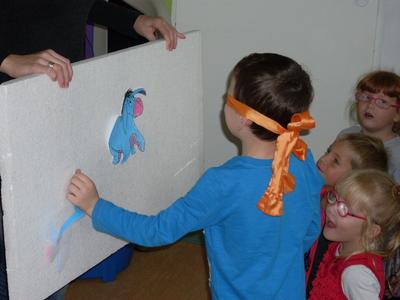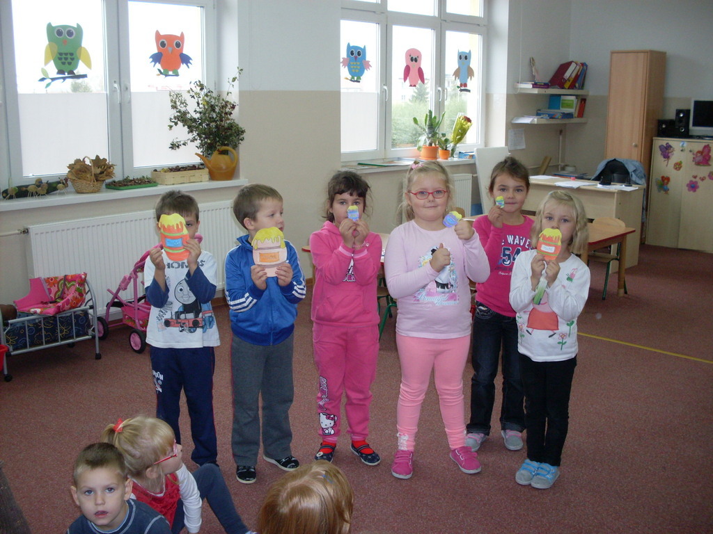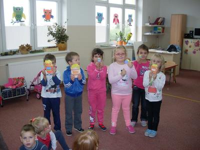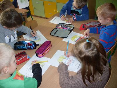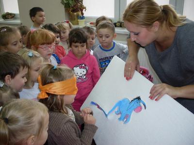 Z tej okazji pomogliśmy misiowi odnaleźć zagubione dzbanki z miodkiem. Zaśpiewaliśmy „sto lat” i złożyliśmy rysunkowe życzenia.