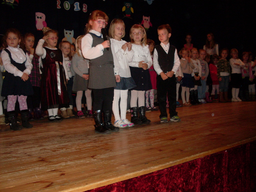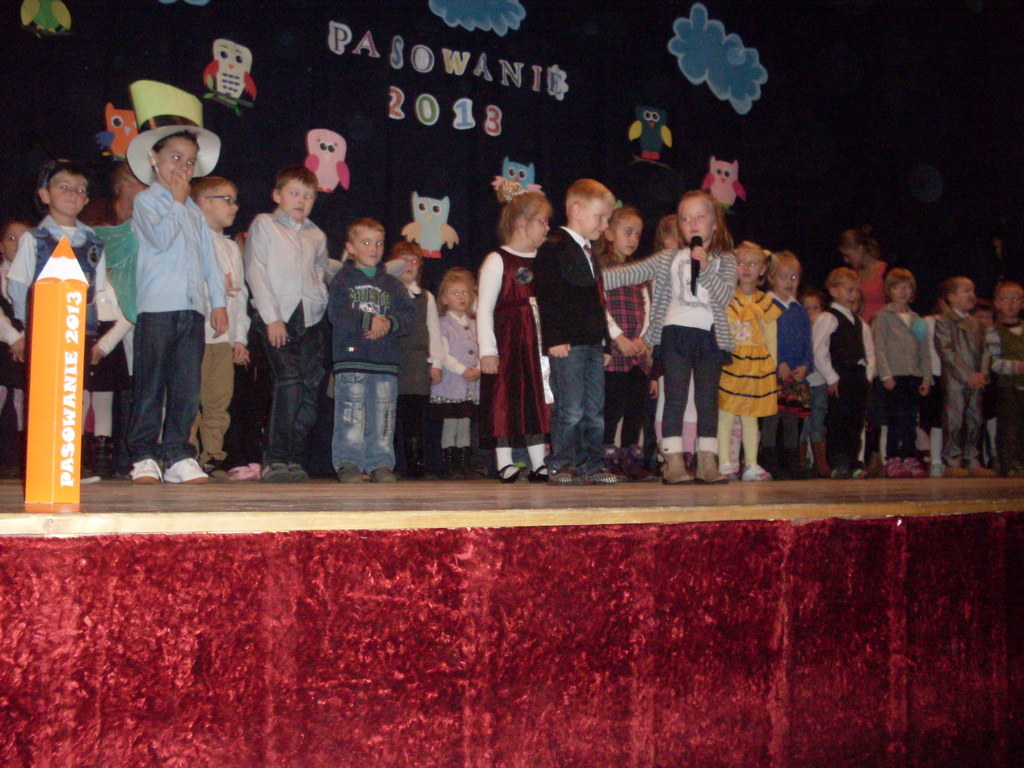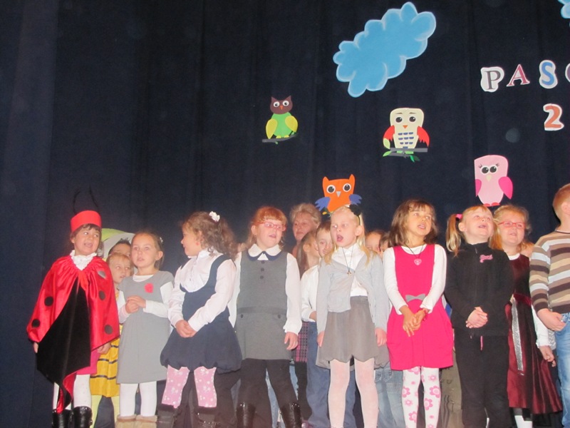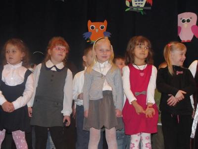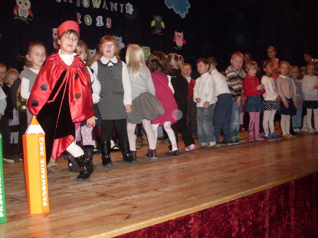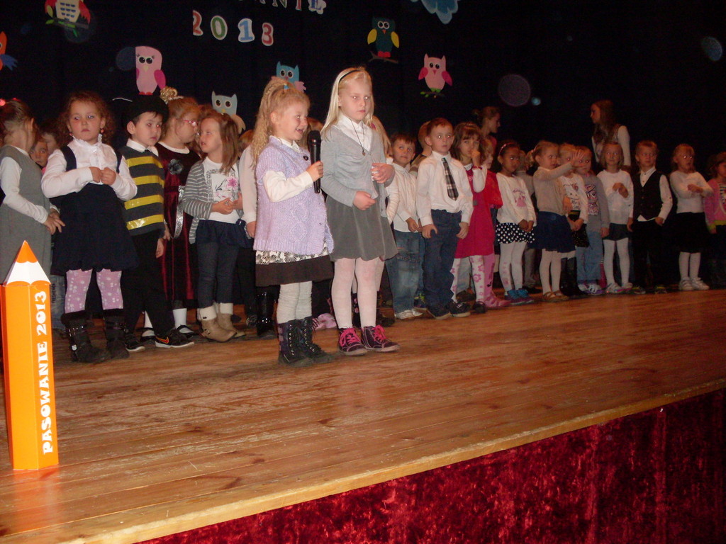 Uroczystości towarzyszyła piękna jesienna aura. Dopełnieniem uroku tego dnia były barwne stroje dzieci , wiersze i piosenki. A przy słowno-muzycznej improwizacji ,,Pszczółki Mai” wszyscy odpłynęliśmy w marzenia. Potem dzieci złożyły przyrzeczenie. Przejście przez magiczne koło i pasowanie przez panią dyrektor atrapą tęczowego lizaka oznaczało gotowość bycia przedszkolakiem. Natomiast my - wychowawczynie poprowadzimy je przez edukację przedszkolną ,, nie najłatwiejszą drogą ale najpiękniejszą”.