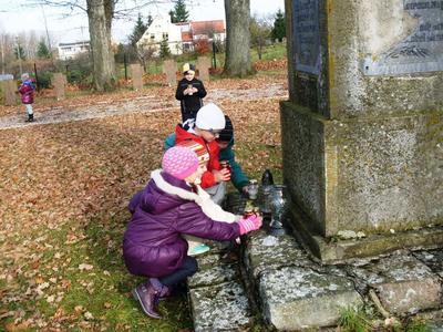Przedszkolaki zadbały o to, żeby w Święto Zmarłych nie było zapomnianych grobów. Rozjaśniły zniczami pamięci mogiły na cmentarzu wojennym w Kowalach Oleckich.