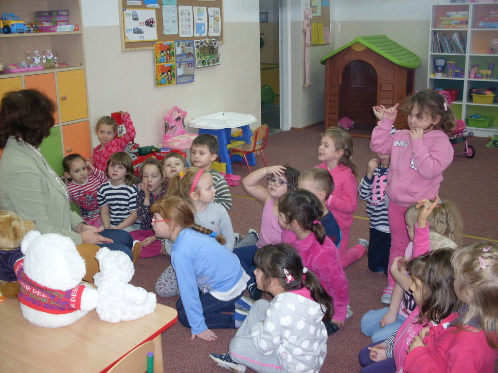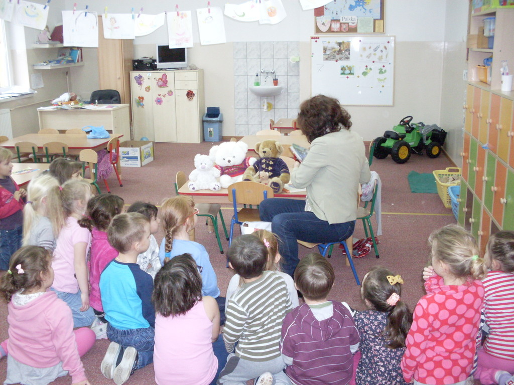27, 28 listopada obchodziliśmy urodziny swojego przyjaciela – misia. Przygotowała je w sposób atrakcyjny bibliotekarka pani Beata Grudzińska.. Wprowadziła dzieci w krainę bajek, gdzie bohaterami są misie. Zachęcała też dzieci do odwiedzania biblioteki - ,,miejsca zaczarowanego, gdzie blisko jest do bajki, do uśmiechu i wzruszeń...”.