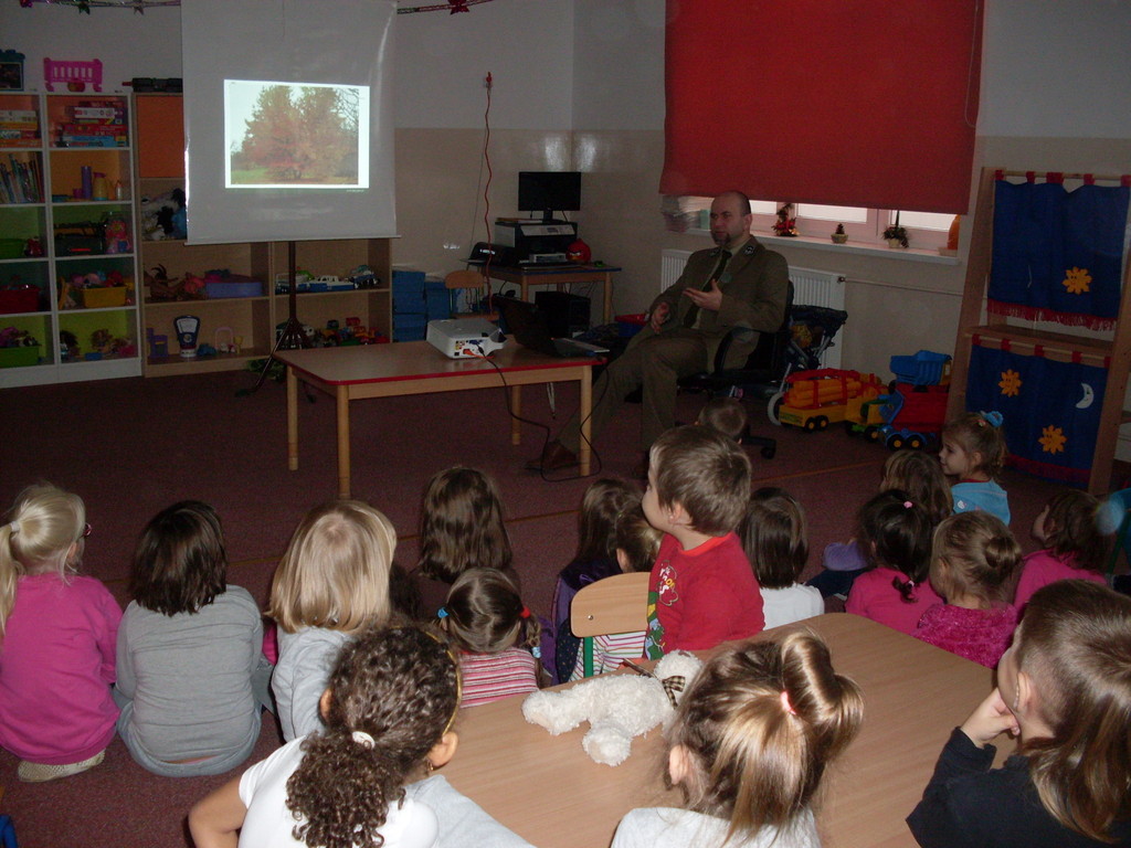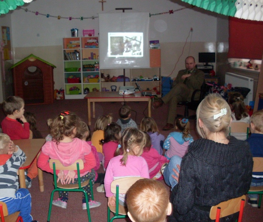 Wszyscy wiemy, czym jest las. Znamy go z bezpośredniego kontaktu, korzystamy z jego darów, artyści odzwierciedlają las na obrazach, poeci wzruszają piórem. Dzieci z wielkim zainteresowaniem słuchały o faunie i florze leśnej, zachwycały się slajdami, które przedstawiały bogactwo lasu. Spotkanie z leśniczym było dla dzieci interesującą lekcją przyrody,  lekcją kształtującą  u dzieci postawy pełne szacunku do lasu.
