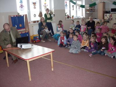 11.12.2013 r. gościliśmy w przedszkolu leśniczego pana Piotra Wydrę, który wzbogacił wiedzę dzieci na temat lasu.